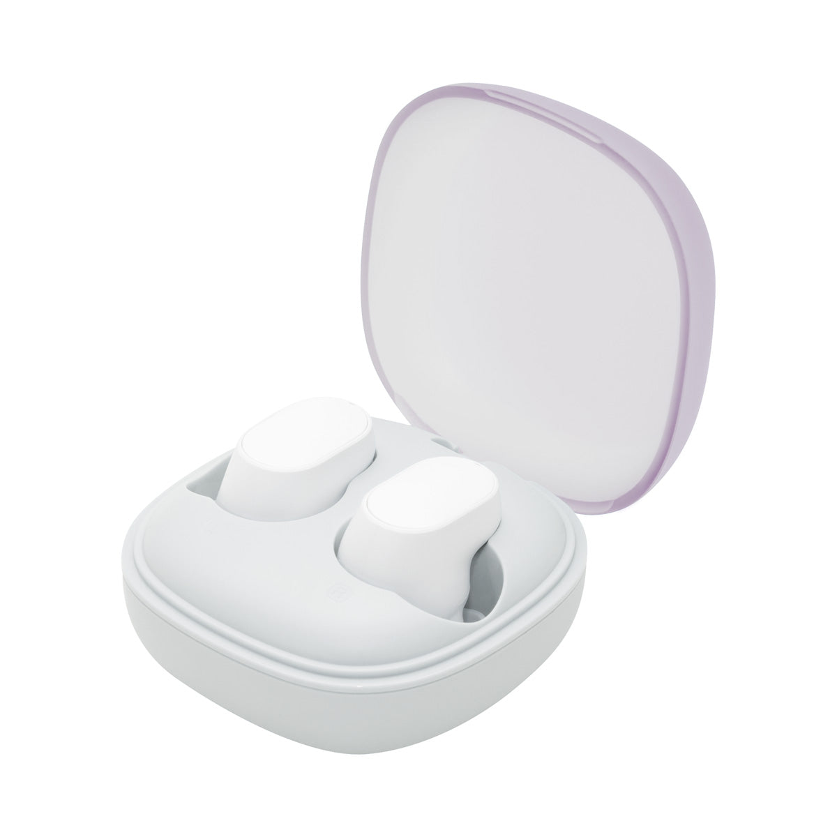 Audífonos bluetooth con base recargable. Controles integrados touch para llamadas, volumen y reproducción de audio. Reproducción de música de 4 hrs aproximadamente. Rango de conexión de 10 metros. Batería de 30 mAh en los auriculares y 300 mAh en el estuche de carga. Incluye cable cargador USB, estuche de carga con conexión tipo C y caja individual.