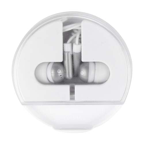 Audífonos enrollables con estuche con función de soporte para smartphone.