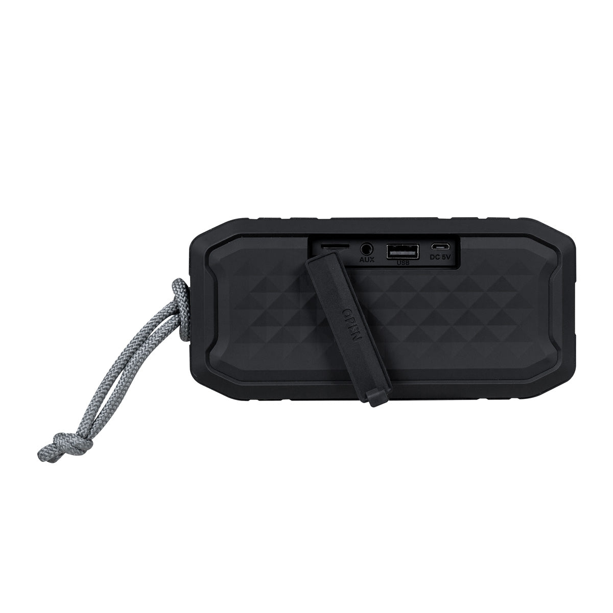 Bocina IPX7 a prueba de agua, lo que permite sumergirla hasta 1 metro por un máximo de 30 minutos. Bocina con tecnología bluetooth 5.3. Potencia 5 W. Batería recargable con capacidad de 1,200 mAh que otorga un tiempo de reproducción de 3 a 4 horas. Alcance de conexión de 10 metros. Además, agrega controles integrados de llamada, función FM, puerto de conexión USB, micro USB, conexión para cable auxiliar 3.5 y ranura para tarjeta TF. Incluye cable con conector micro USB y caja individual.