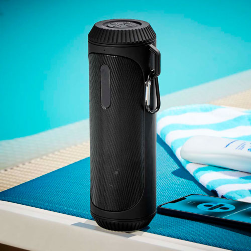 Bocina bluetooth con batería recargable. Reproducción de música 6 horas aproximadamente. Controles integrados de llamada, volumen y reproducción de audio. Entrada de tarjeta microSD y USB, modo radio FM. Función manos libres y linterna de un led. Gancho para transportar fácilmente. Incluye cable cargador USB.