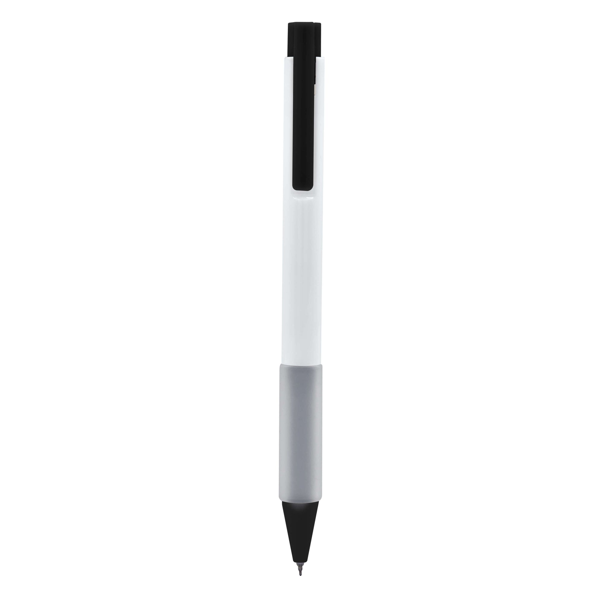 Bolígrafo de tinta de gel con grip de silicón antiderrapante. Mecanismo pulsador.