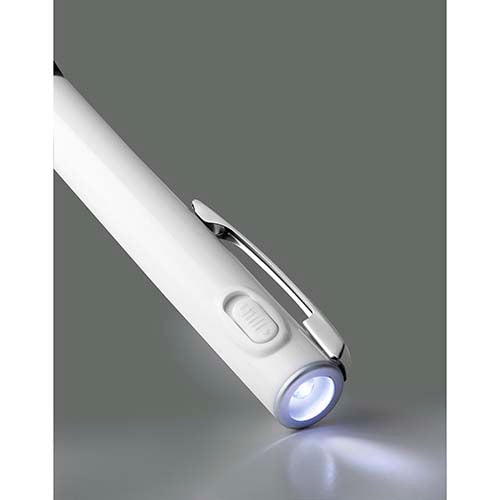 Boligrafo con lampara y grip antiderrapante. Mecanismo twist. Incluye bateria.