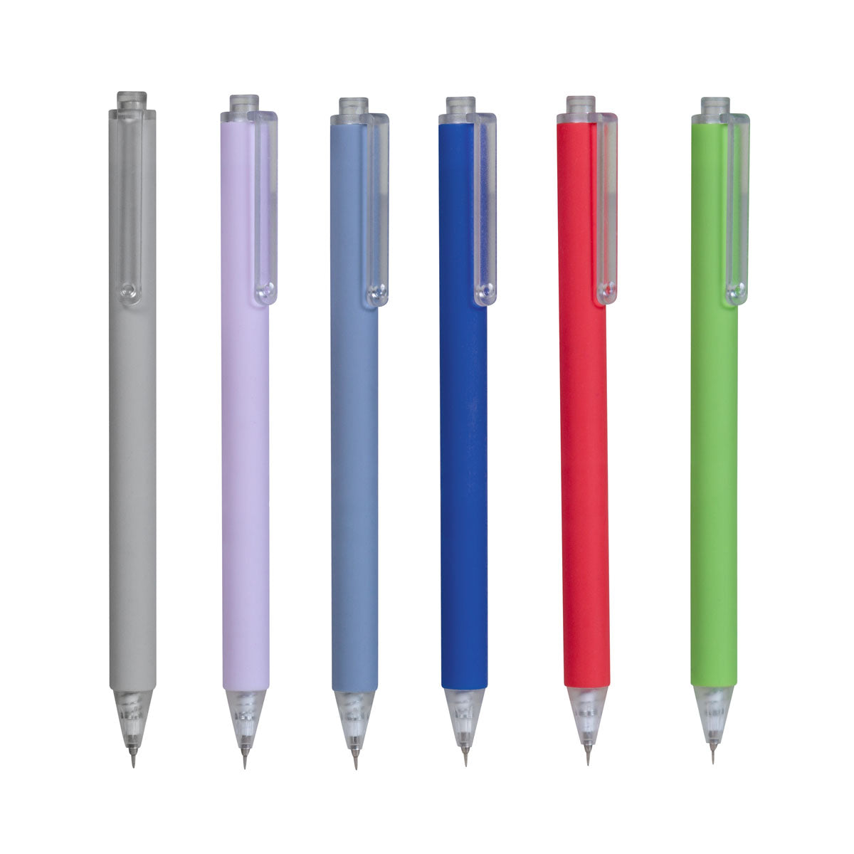 Bolígrafo de punto fino con terminado tipo rubber. Mecanismo pulsador.