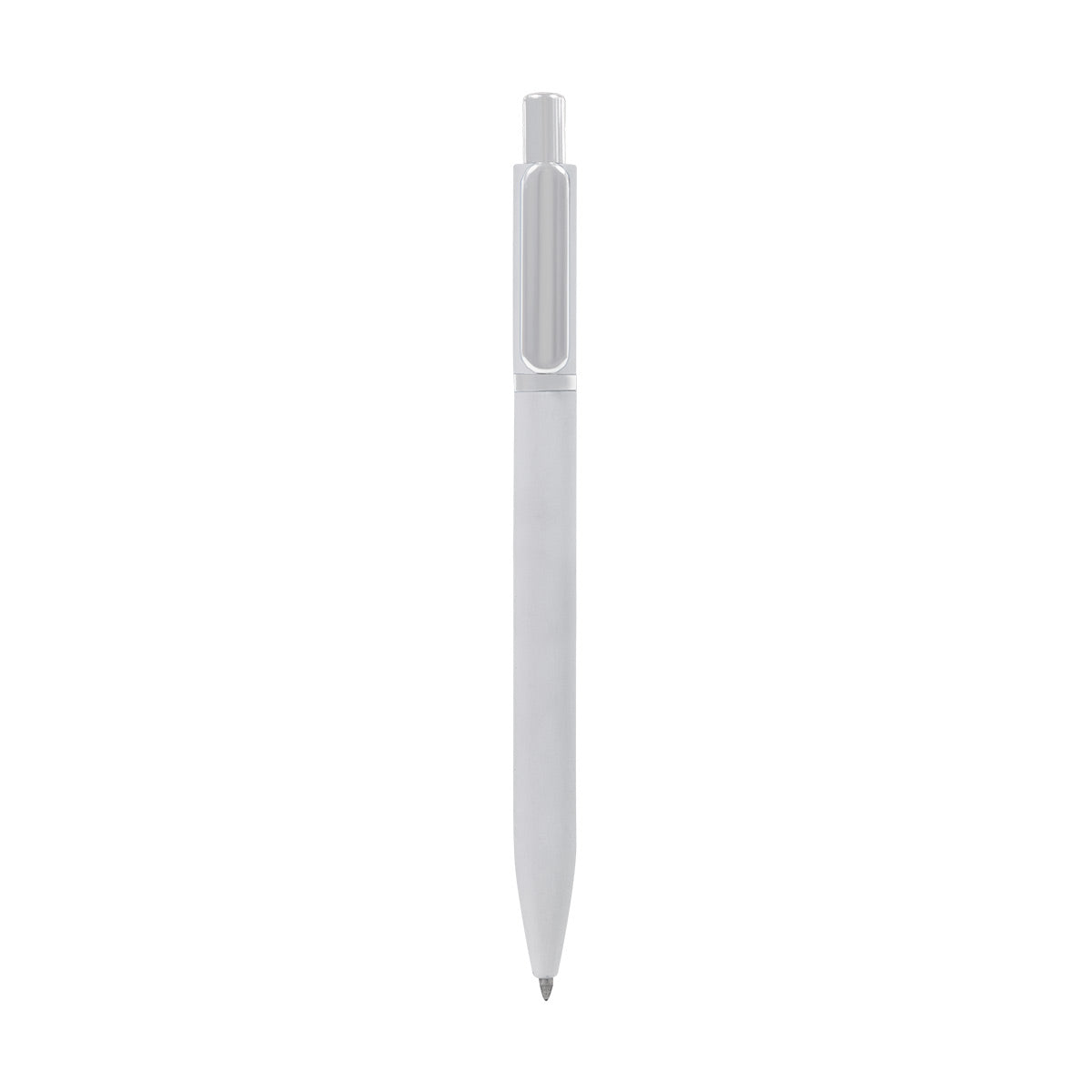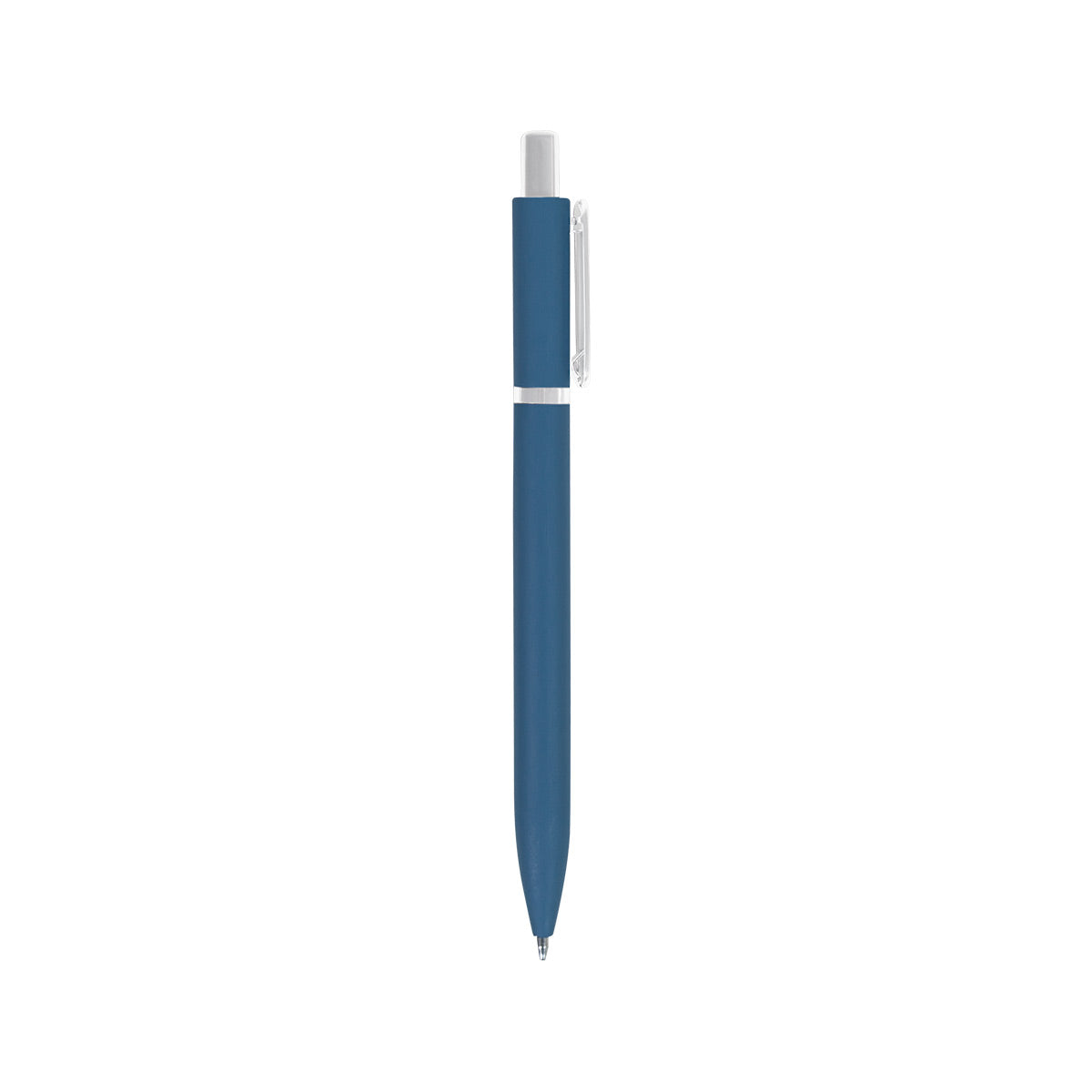 Bolígrafo con terminado rubber y clip metalizado. Mecanismo pulsador.