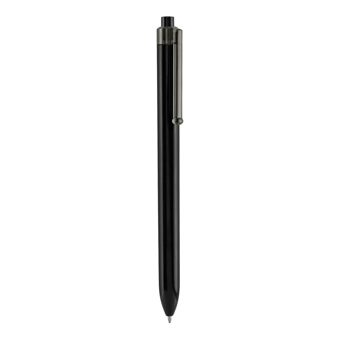 Bolígrafo con clip translúcido. Mecanismo pulsador.