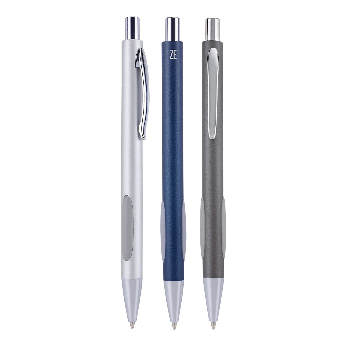 Bolígrafo con grip antiderrapante en los costados. Mecanismo pulsador. Incluye estuche. Este producto por ser últimas piezas puede presentar alguna variación, no se aceptan devoluciones.
