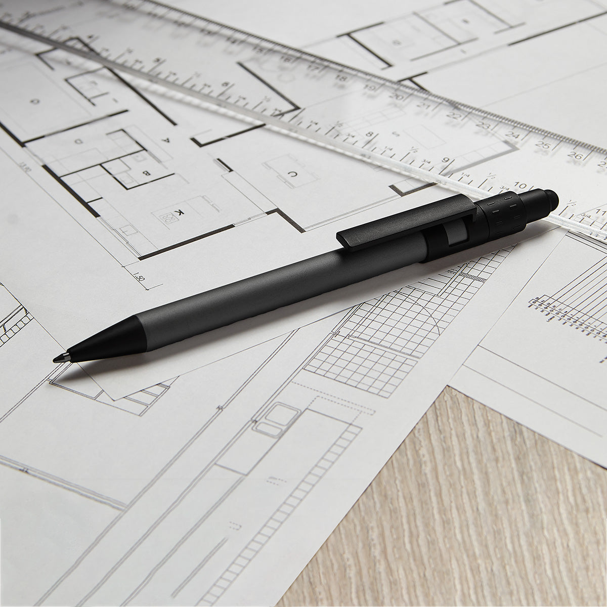 Bolígrafo con touch screen. Mecanismo pulsador. Incluye funda.