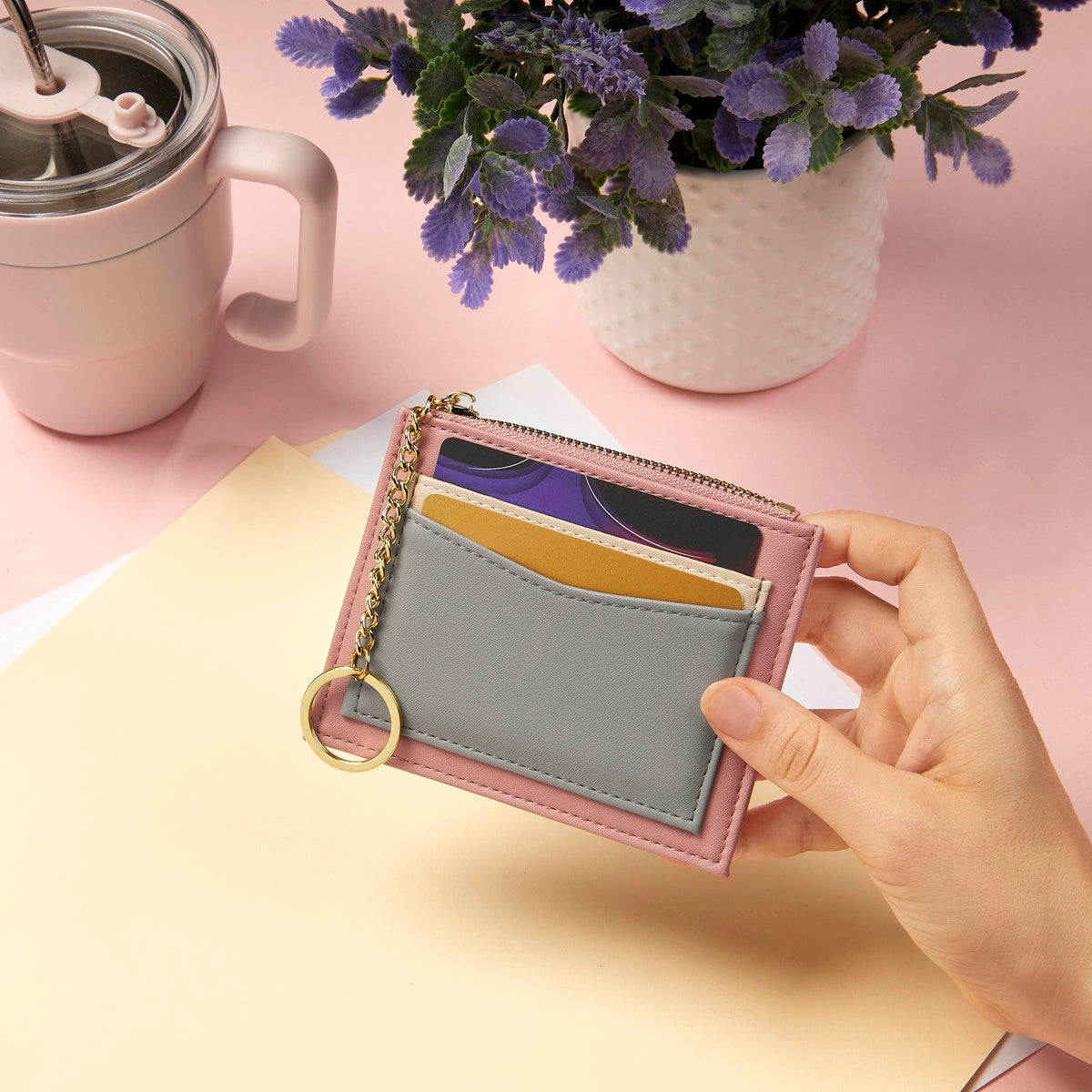 Práctico monedero, cuenta con un compartimento para dinero en efectivo. Gracias a su cremallera mantendrá tus monedas y billetes seguros. En el exterior, agrega múltiples compartimentos para organizar tus tarjetas y credenciales. Su diseño se realza con una combinación de tonos.