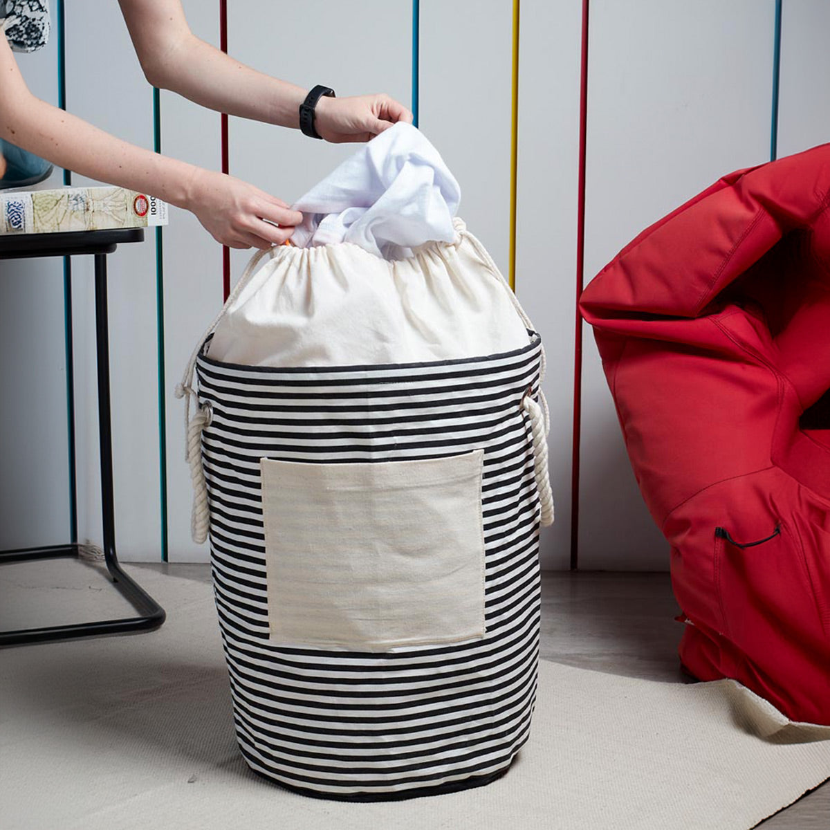 Bolsa principal con jareta y bolsa frontal. Interior laminado. Incluye asas de mano laterales.