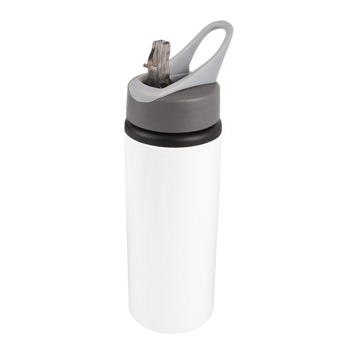Cilindro para sublimar de aluminio de una pared. Tapa de plástico con cierre de rosca, asa y popote. Incluye caja individual.