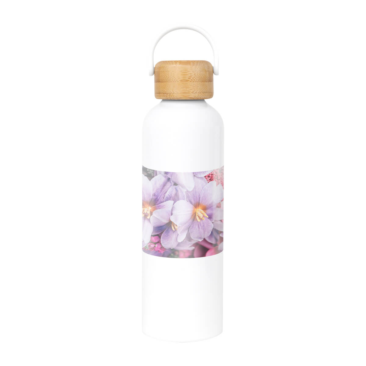 Cilindro metálico para sublimar de una pared. Tapa de bambú con cierre de rosca y asa de plástico. Incluye caja individual. El bambú es un producto natural el cual puede presentar variaciones en tonalidades y vetas.