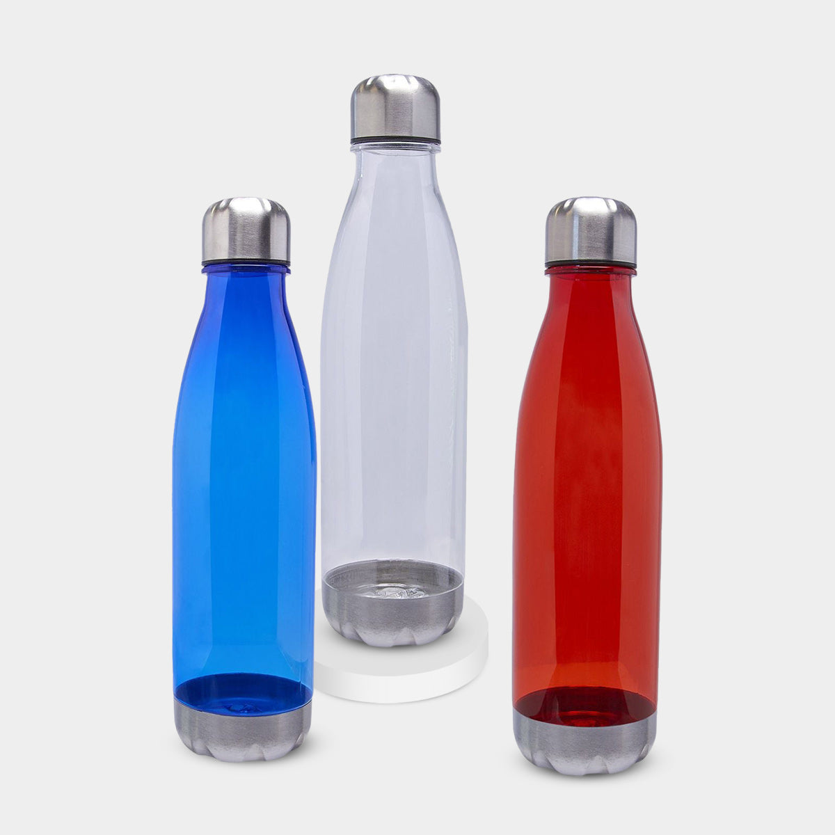 Cilindro de plástico con tapa de metal con sistema de rosca.