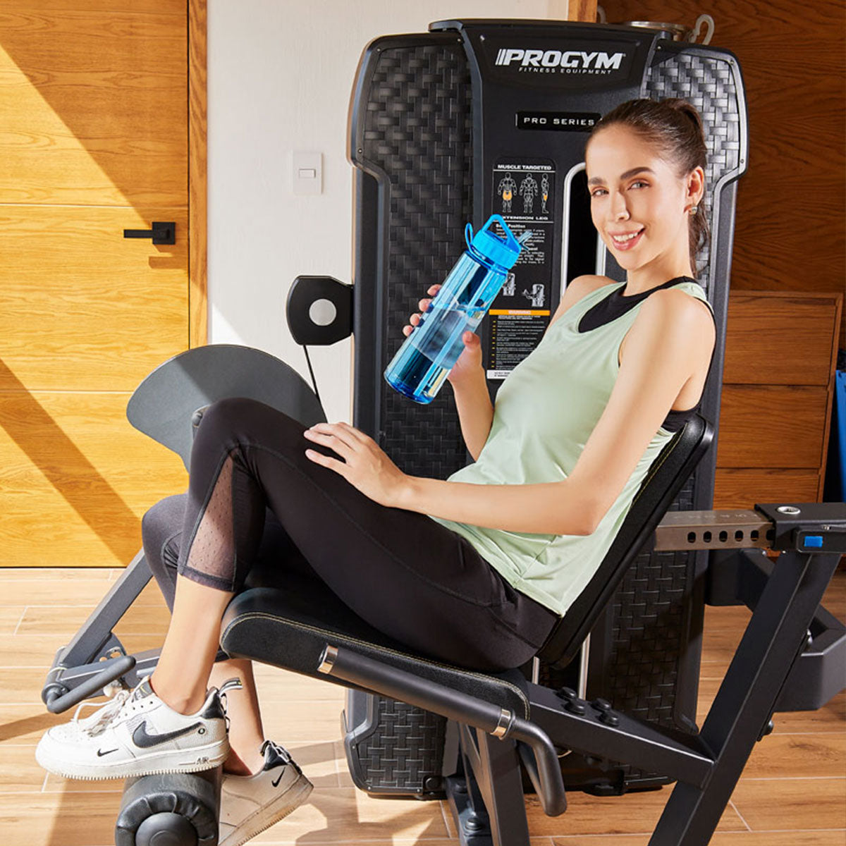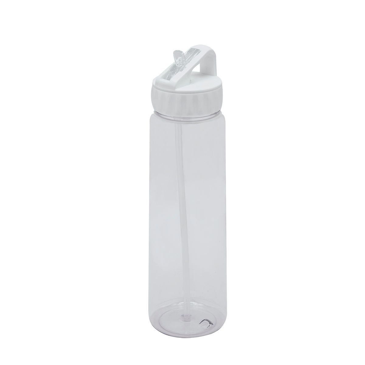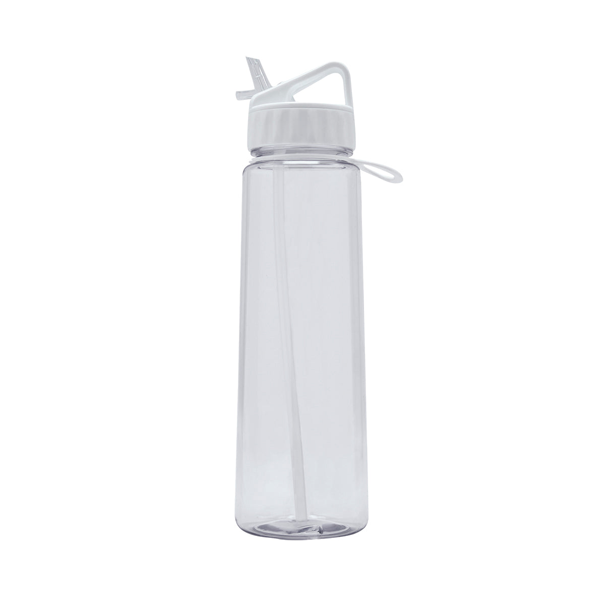 Tapa con cierre de rosca, asa y boquilla plegable para beber. Incluye popote y aro de silicón para colgar toalla, llaves etc. Caja individual incluida.