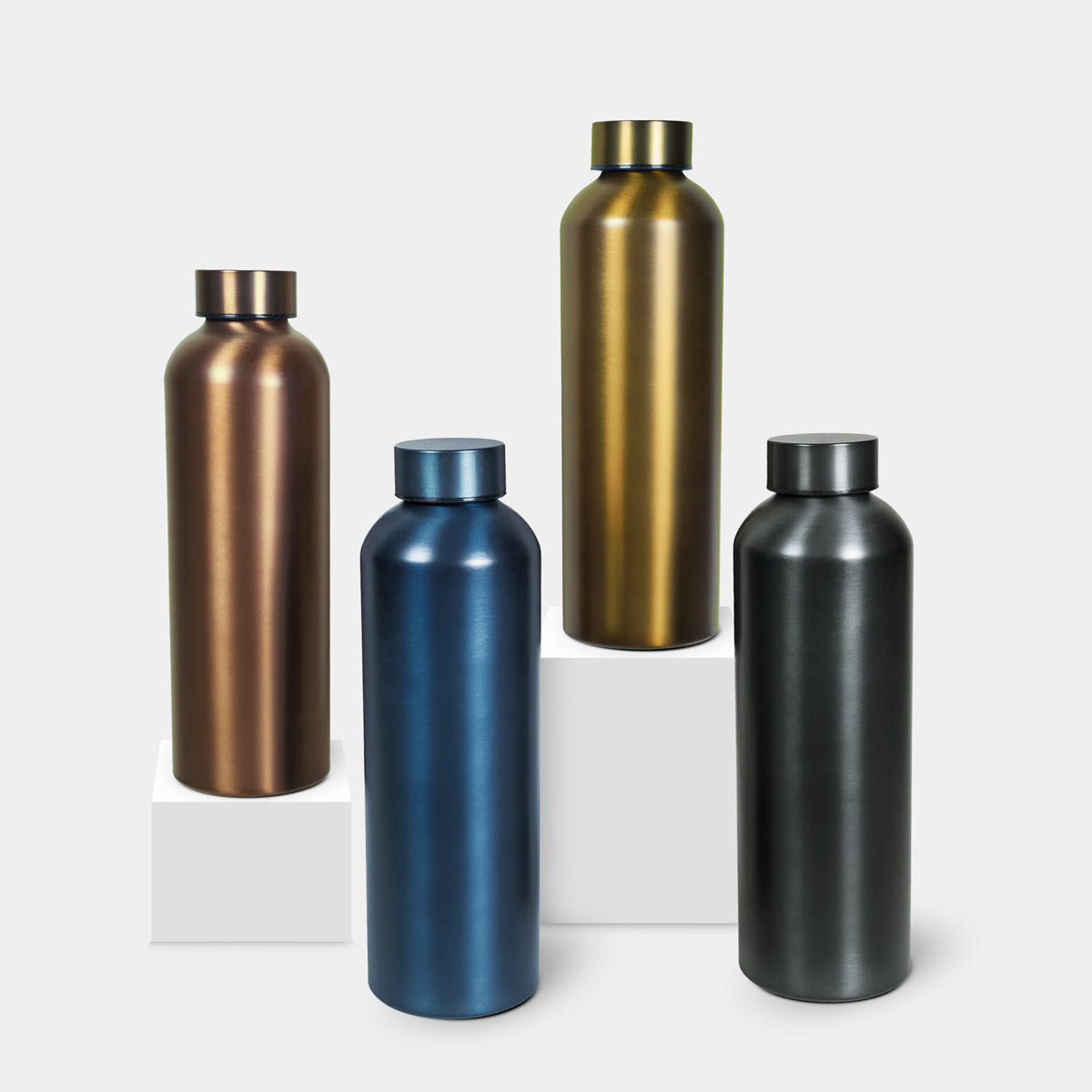 Cilindro de aluminio de una pared. Tapa de plástico con cierre de rosca. Terminado metálico. Incluye caja individual.