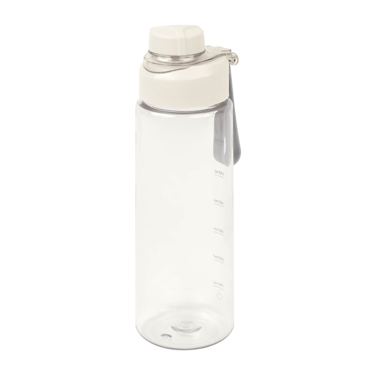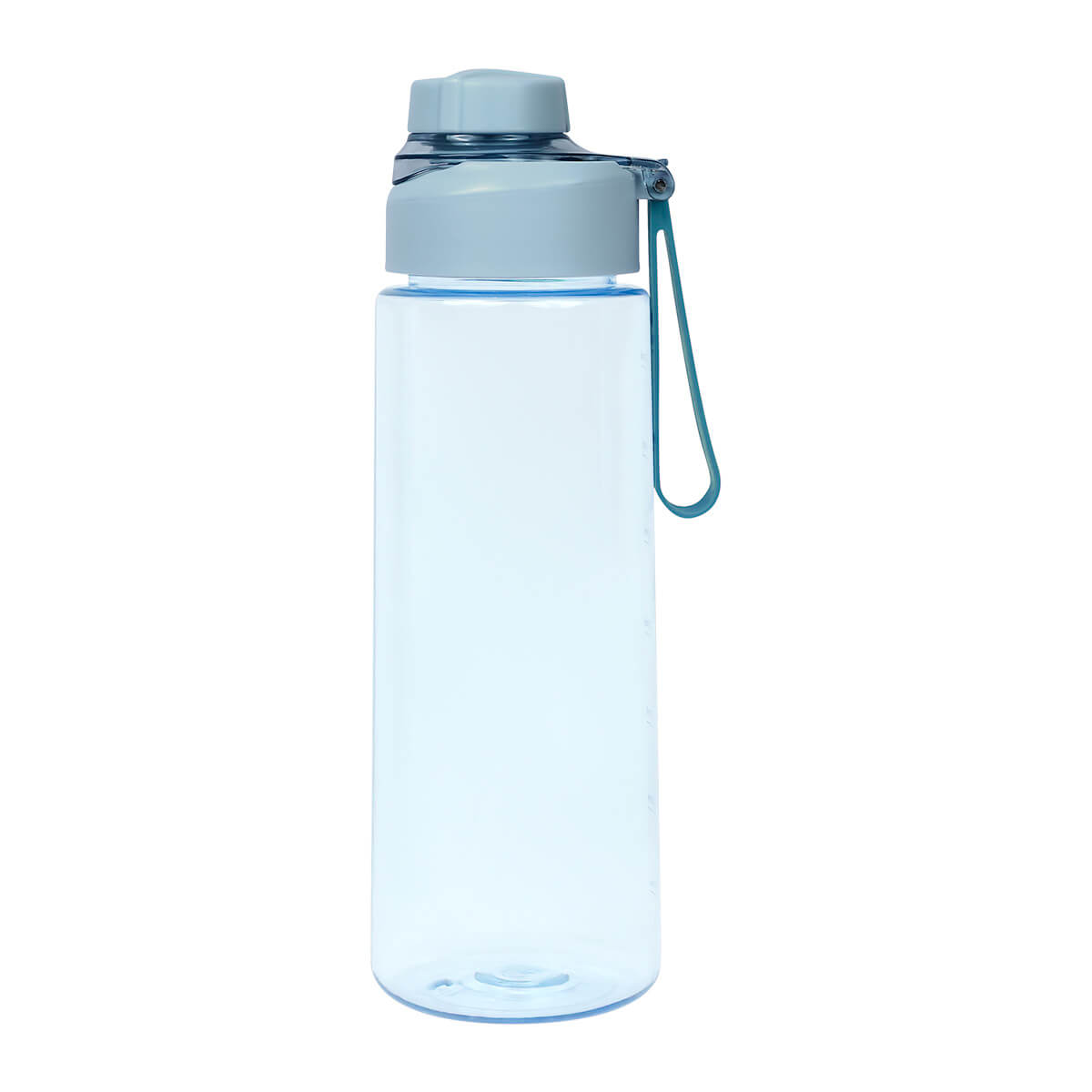 Cilindro de plástico de una pared. Tapa de plástico con sistema de rosca y sobretapa para la boquilla. Cuenta con asa de silicón para llevarlo cómodamente e indicador de mililitros. Perfecto para el día a día.