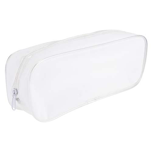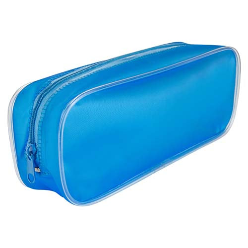 Cosmetiquera de plástico con fuelle. Compartimento principal con cierre.