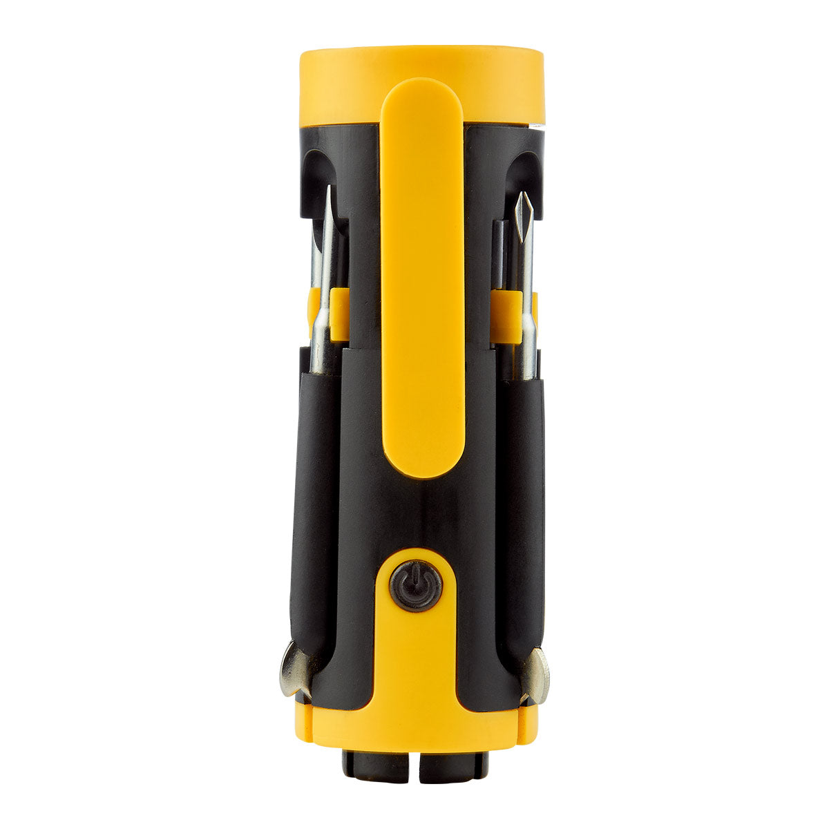 Contiene desarmador con clip, 6 puntas diferentes, 4 LEDS utiliza 2 baterías AAA (no incluidas).