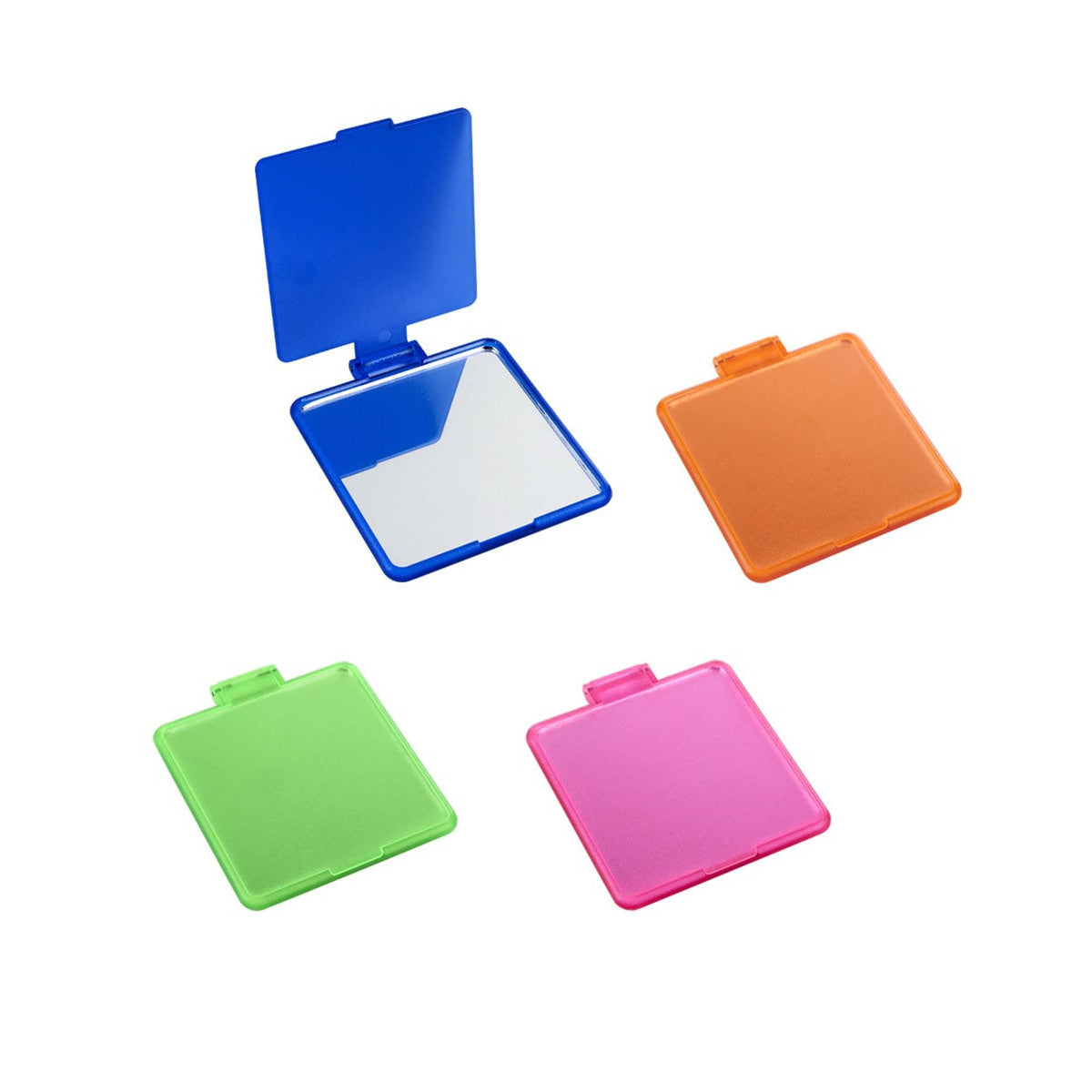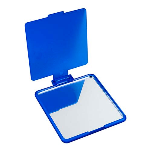 Espejo cuadrado de bolsillo. La tapa sirve como base.