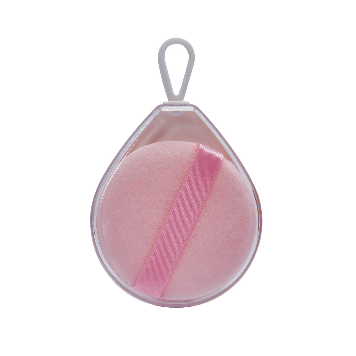 Esponja para aplicar polvos y lograr un maquillaje con acabados mate y una base bien pulida, con tira de listón para una mejor sujeción. Incluye estuche de plástico. Producto lavable.