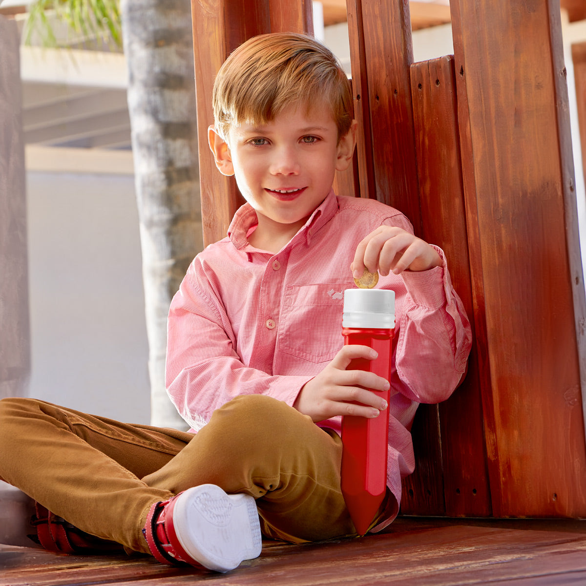 Estuche porta lápices doble. Cuenta con ranura para monedas en la tapa para función de alcancía.