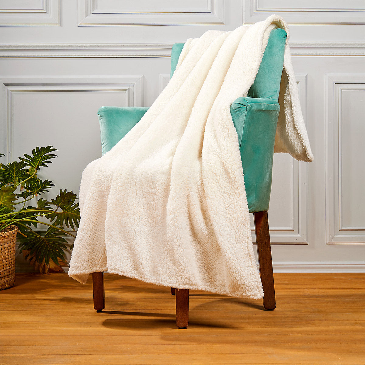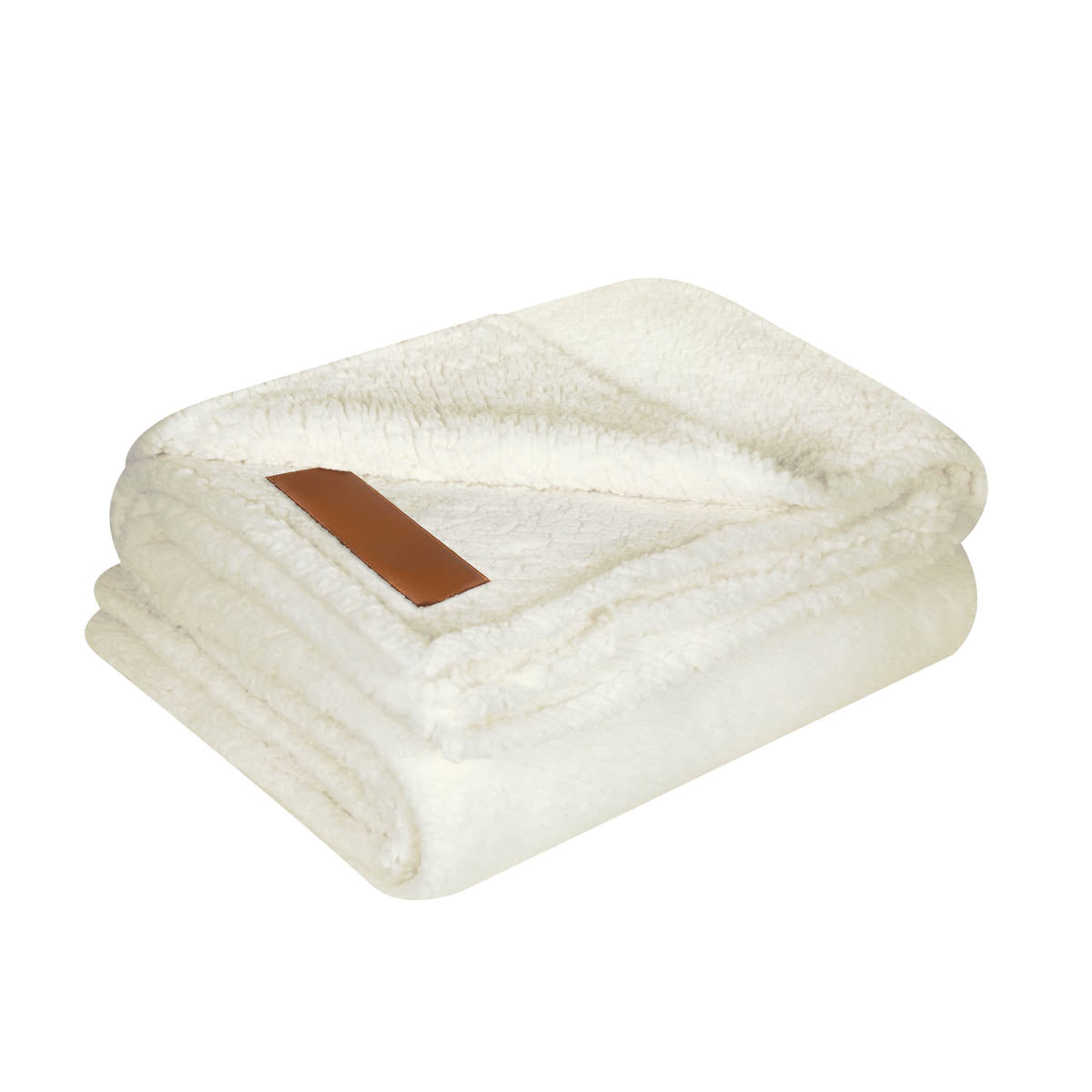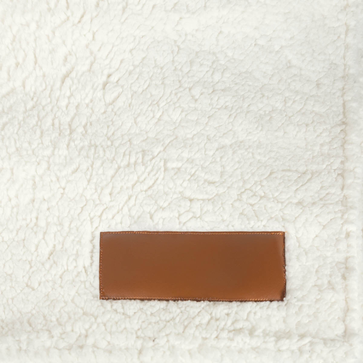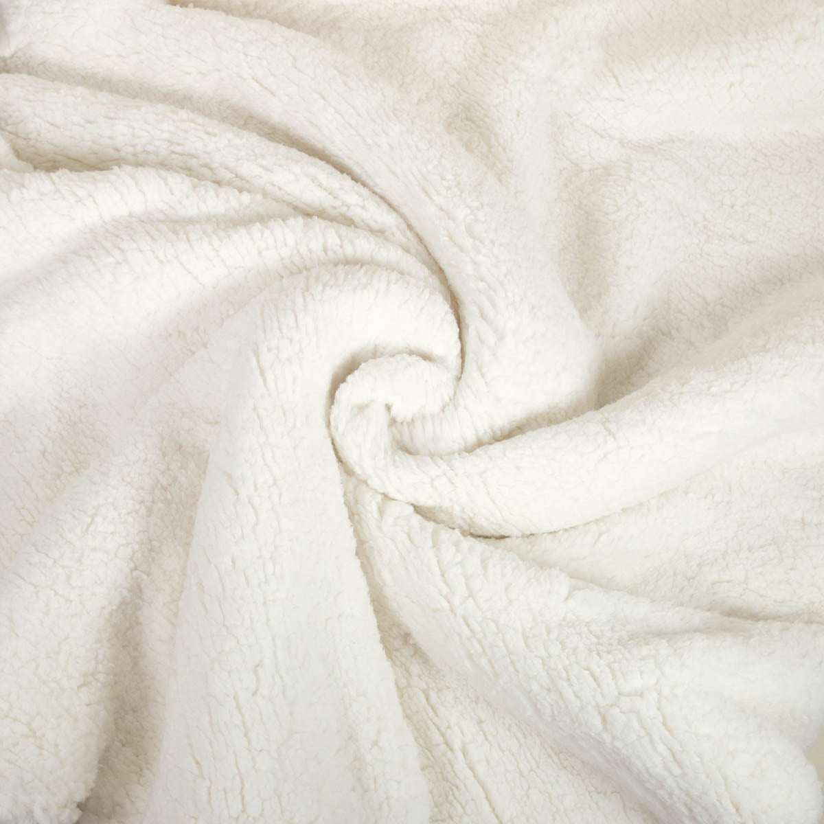Frazada con textura tipo borrego. Acogedora y comoda, la cual proporciona una sensación cálida y suave al tacto.