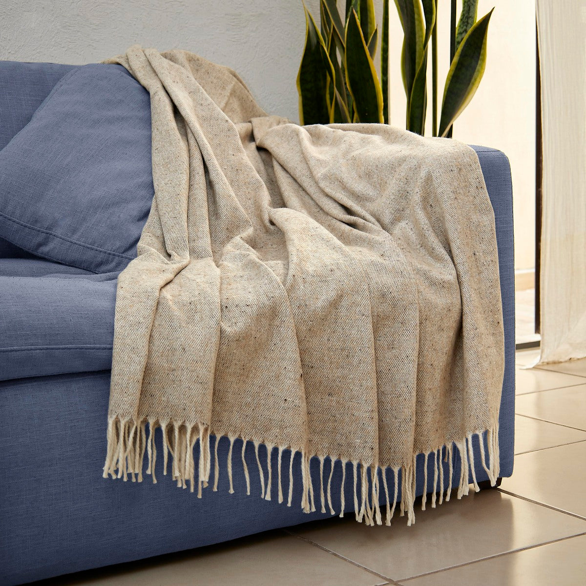 Manta con flecos en los extremos. Composición: 80% lana y 20% poliéster. Añade calidez y estilo a cualquier espacio, diseñada para ser tanto funcional como estéticamente agradable, ya que no solo te envuelve en confort, sino que también aporta un toque de elegancia a tu hogar. Perfecta para colocar sobre un sofá, una cama o en tu rincón favorito, su diseño versátil complementa cualquier decoración.