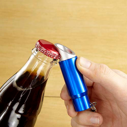 Llavero con lampara de 3 LEDS. Incluye gancho, destapador, cuna abrelatas y 3 baterias de boton.