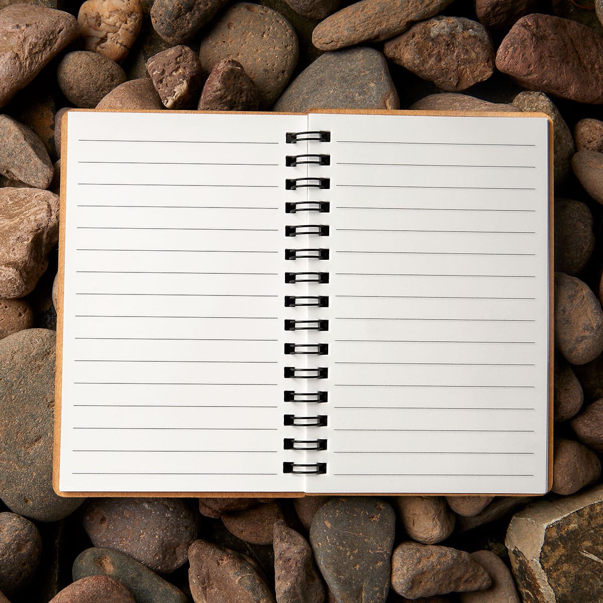 Libreta con 60 hojas de raya. Espiral metálico doble. Las hojas interiores están fabricadas a base de piedra natural. Este papel es resistente al agua, al desgarro y a las manchas.