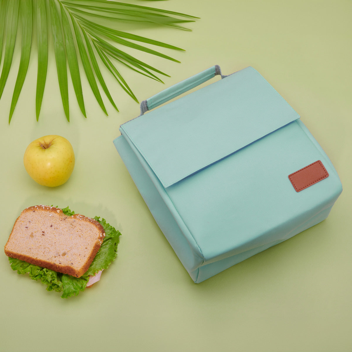 Lonchera con interior metalizado. Bolsa principal estilo solapa con cerrado de velcro. Al frente parche de curpiel. Para mayor comodidad cuenta con asa de transporte superior. Empaca tus alimentos y bebidas para el trabajo, escuela, viaje o picnic. Capacidad para 6 latas.