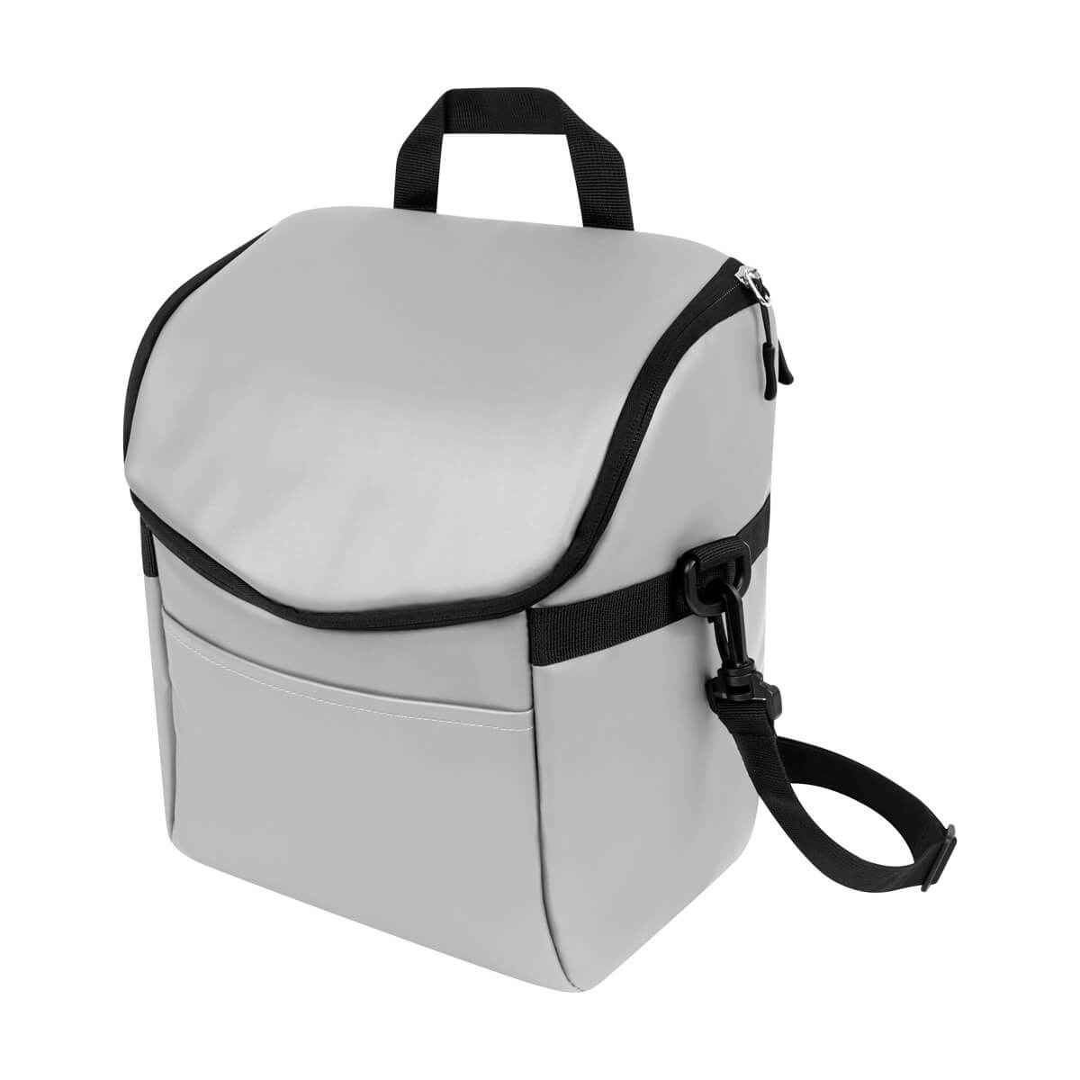 Lonchera con interior plastificado y un cierre en el compartimiento principal de amplia apertura, para un acceso rápido y sencillo a su interior. Incluye un bolsillo frontal para utensilios pequeños. Su asa para hombro desmontable permite transportarla cómodamente. Capacidad 12 latas.