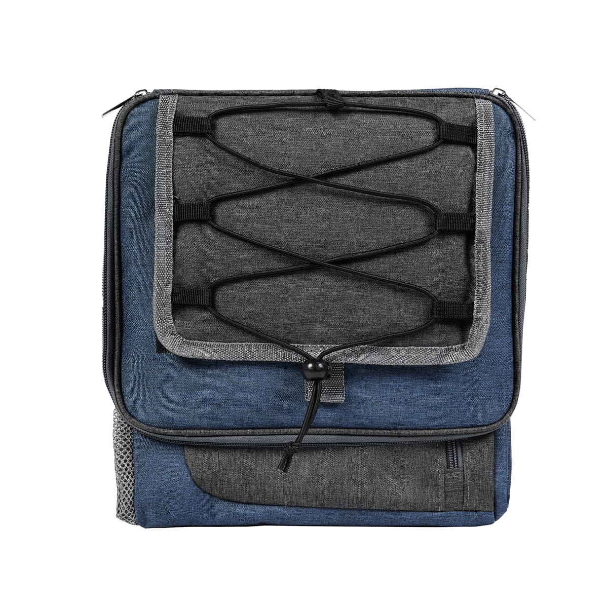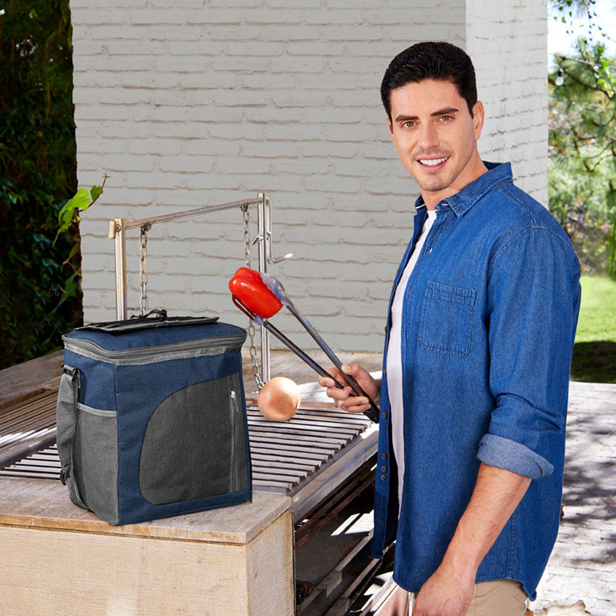 Lonchera con interior plastificado. Cuenta con bolsillo principal con cierre para almacenar tus alimentos de forma segura. Además, incluye un bolsillo frontal con cierre para llevar utensilios pequeños. Lateral con bolsillo de malla, perfecto para botellas de agua u otros artículos de acceso rápido. Asa para hombro ajustable, que permite portarla cómodamente y a la altura deseada. Para mayor practicidad, cuenta con un acceso rápido en la parte superior, que te permite acceder fácilmente a tus alimentos, sin tener que abrir toda la lonchera y un elástico ajustable, para sujetar accesorios adicionales. Capacidad para 16 latas.