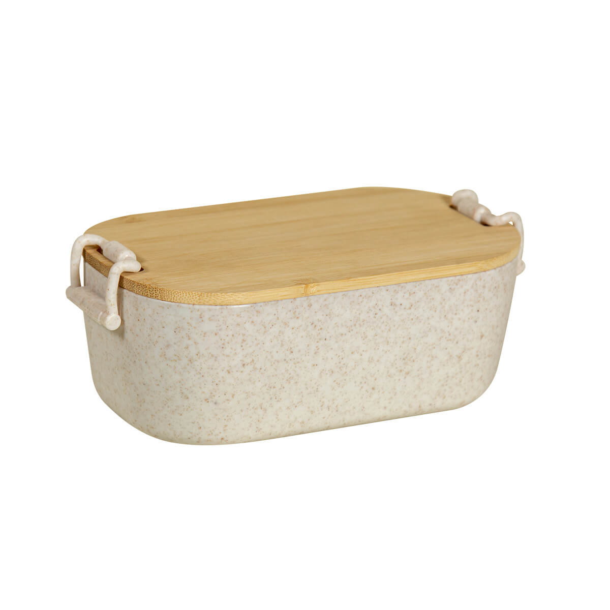 Lonchera de plástico con un toque natural y elegante, su tapa de bambú se asegura con dos broches de plástico, para mantener la lonchera cerrada. En su interior, cuenta con un práctico tenedor y un pequeño contenedor destinado para salsas, aderezos o especias. Esta lonchera no solo ofrece un diseño atractivo, sino también, la versatilidad necesaria para llevar tus alimentos de manera organizada. Apto para el uso en microondas y lavavajillas. La madera es un producto natural el cual puede presentar variaciones en tonalidades y vetas.