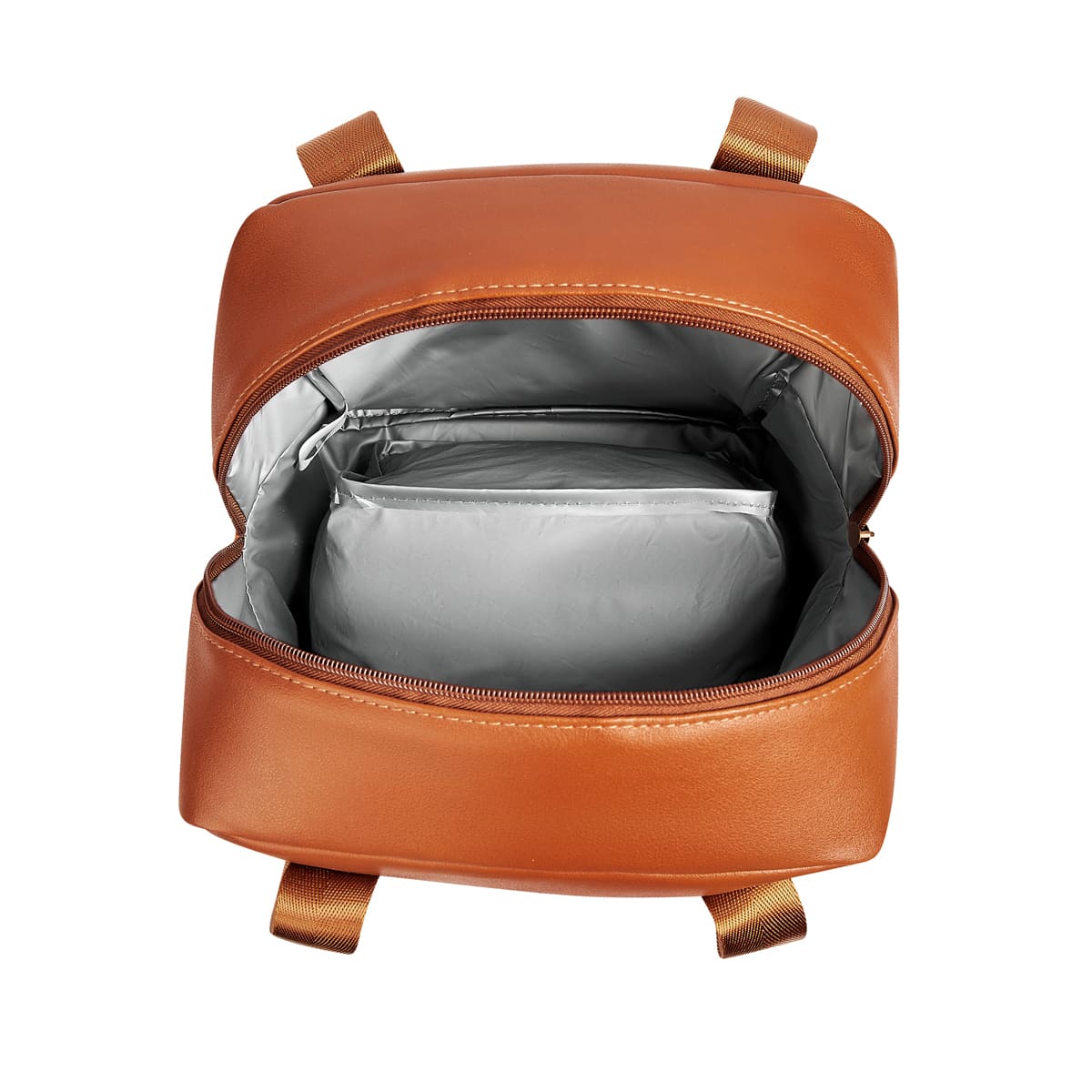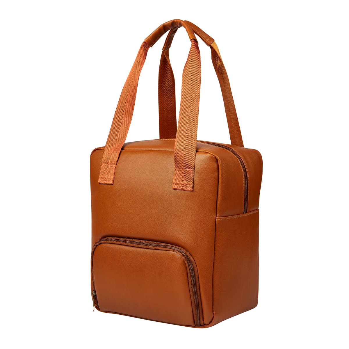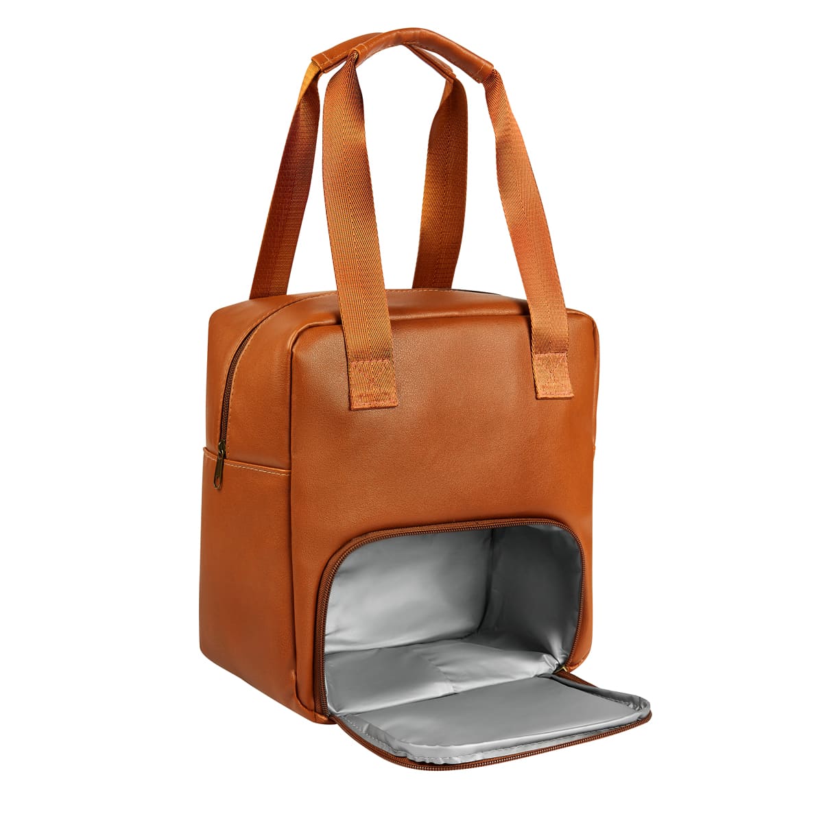 Lonchera de curpiel comoda y portátil. Ideal para llevar tus alimentos a la oficina o escuela. Compartimento principal y bolsa frontal con cierre. Asas de tela con agarre de curpiel. Este producto por ser últimas piezas puede presentar alguna variación, no se aceptan devoluciones.