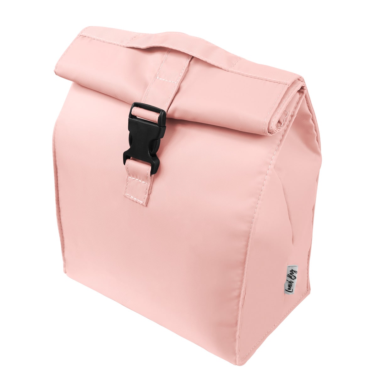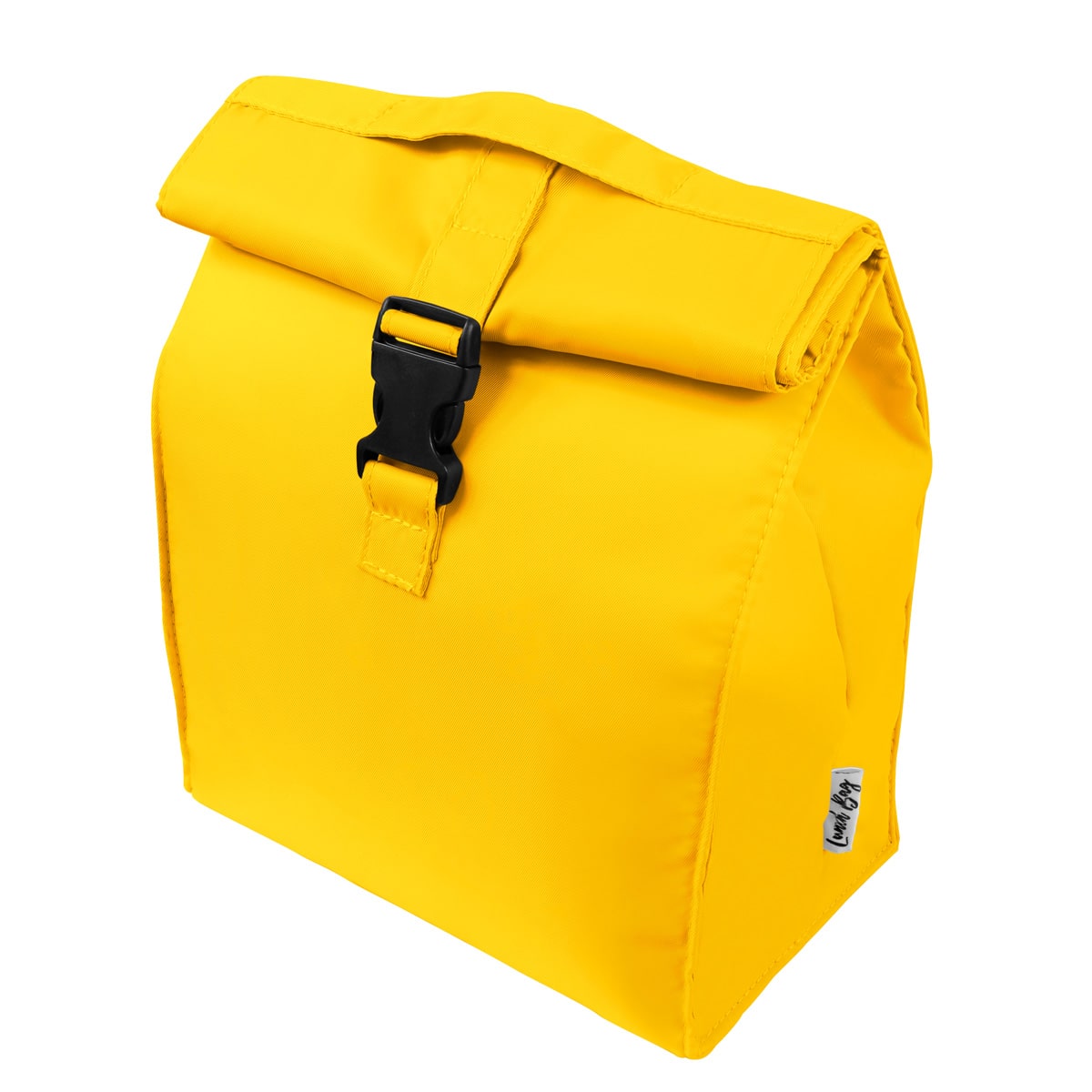Interior metalizado. Bolsa principal con broche, solapa enrollable, asa superior. Capacidad para 6 latas.