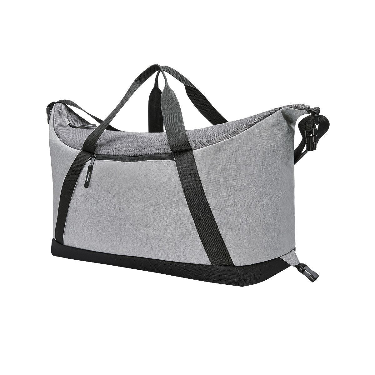 Compartimento principal y bolsillo frontal con cierre. Incluye broches laterales para ajustar el tamaño y correa para hombro ajustable.