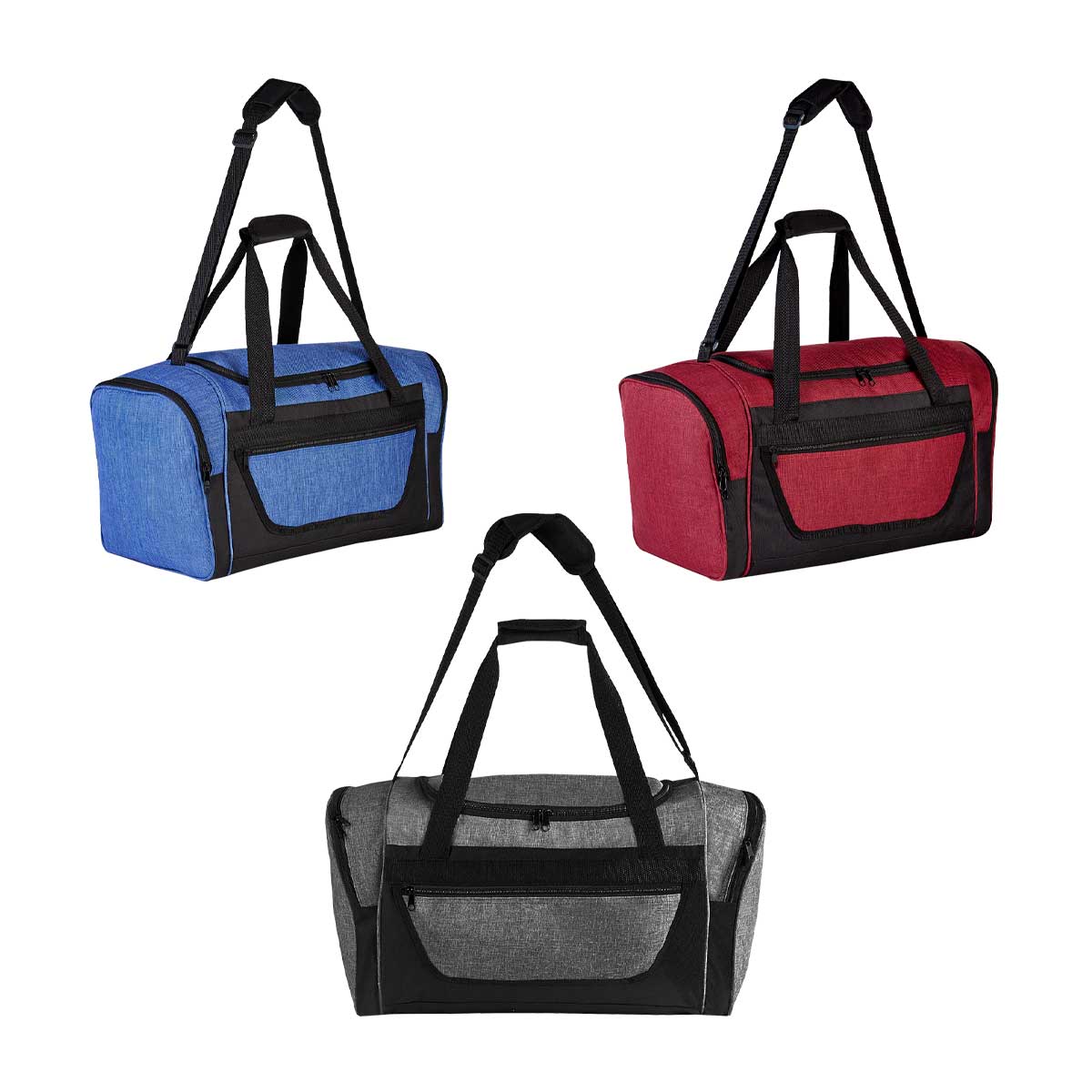 Bolsa principal y bolsa frontal con cierre, 2 bolsas laterales con cierre, correa para hombro ajustable y asas de agarre superior.