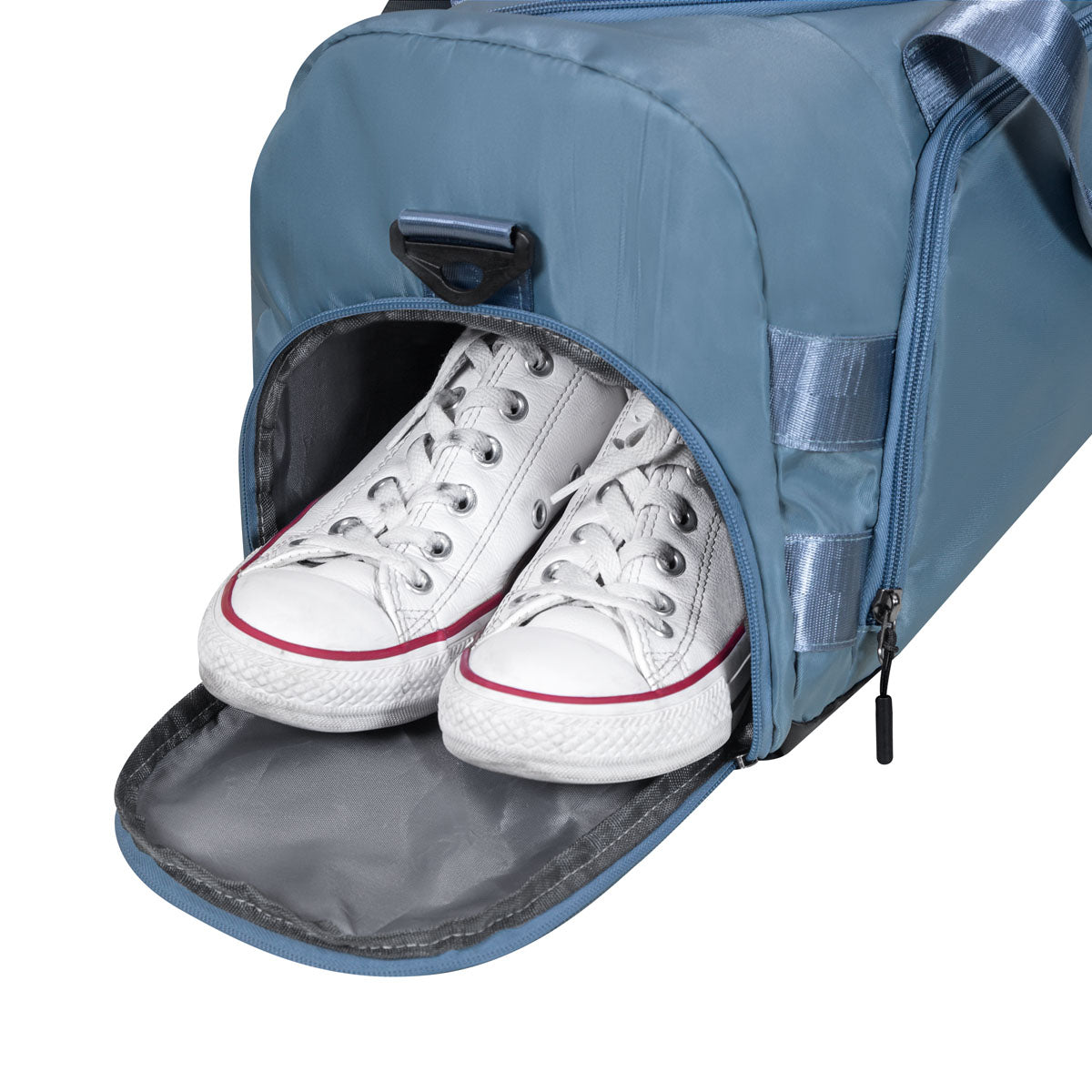 Maleta deportiva con un bolsillo frontal amplio, que te permite organizar tus pertenencias de forma cómoda. Su bolsillo lateral, ofrece un acceso rápido para artículos esenciales. Además, la zapatera es ideal para mantener tu calzado separado y protegido. Las asas superiores se ajustan a la altura deseada y el asa de mano, tiene un protector con broche de velcro para mayor comodidad. En su interior cuenta con un bolsillo impermeable. Cuenta con banda para trolley