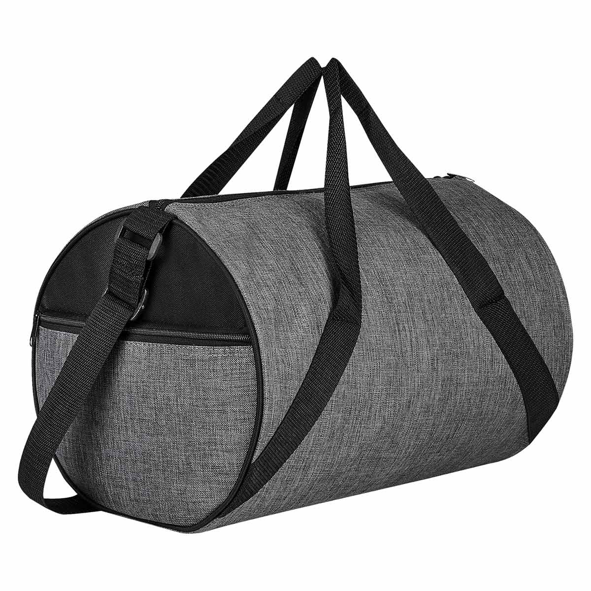 Bolsa principal y bolsa lateral con cierre. Incluye asas y correa para hombro ajustable.