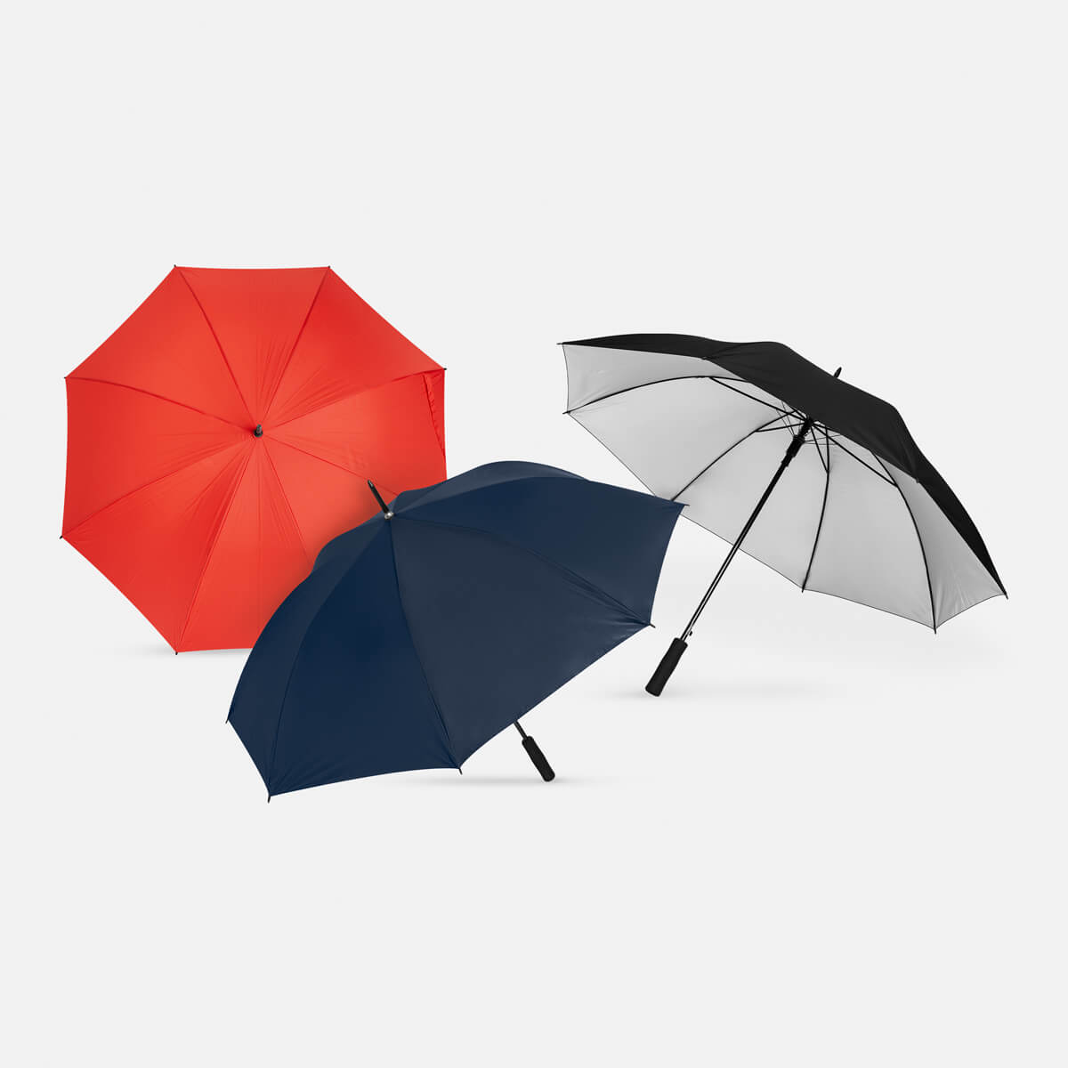 Paraguas de 8 paneles y mango de EVA. Sistema de abertura automática. Incluye recubrimiento interno como protección UV.
