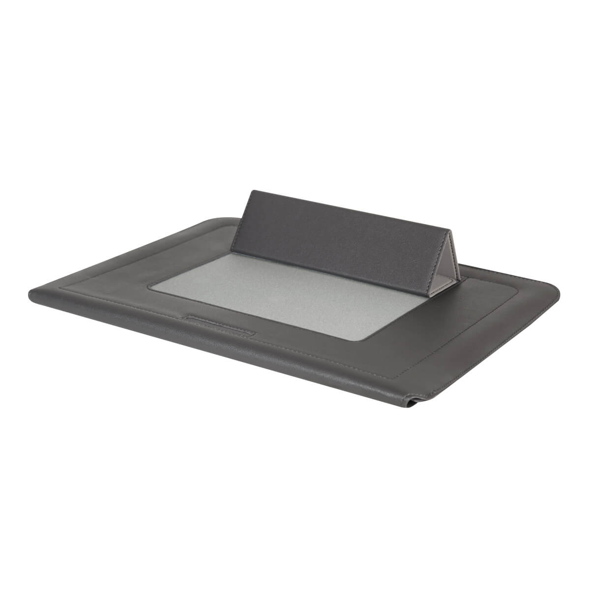 Funda para laptop de hasta 15". Su diseño se dobla ingeniosamente para convertirse en un soporte ergonómico, permitiéndote trabajar de manera más cómoda en cualquier lugar. El cierre con solapa magnética asegura un acceso rápido y fácil, mientras que el interior aterciopelado brinda un extra de cuidado, manteniendo tu dispositivo libre de rayones. Por su diseño compacto y ligero es perfecto para llevar en cualquier bolso o mochila.