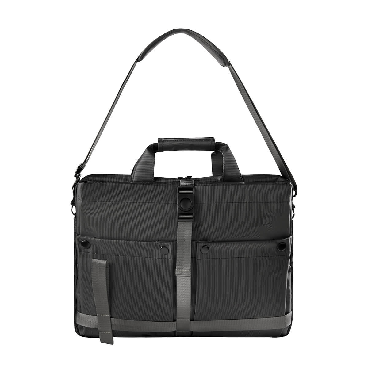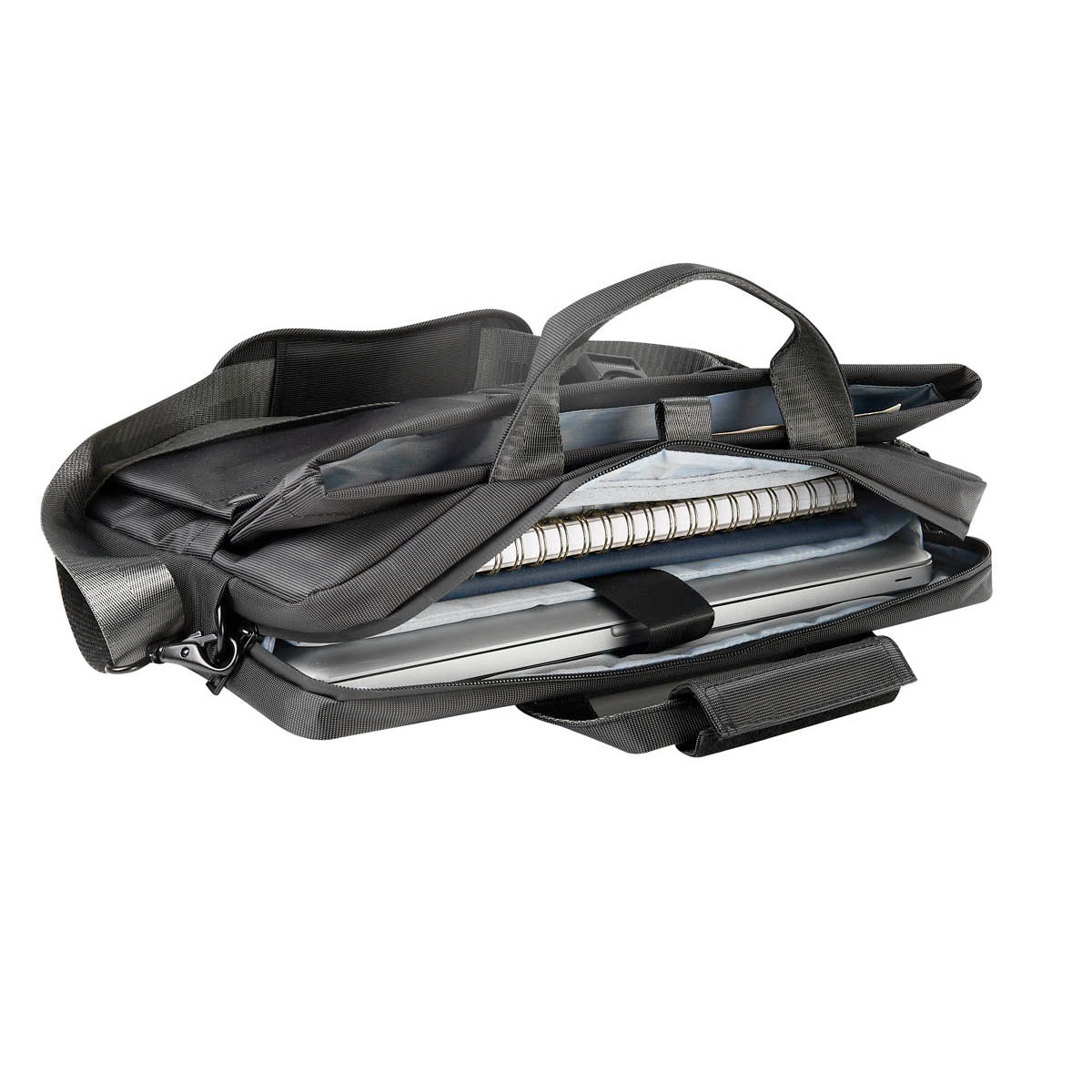 Portafolio ejecutivo con múltiples bolsillos organizadores, ideal para llevar todo lo necesario en un solo accesorio. Su bolsillo principal con cierre, permite guardar una laptop de hasta 15''. Bolsillo frontal, con cierre de velcro y broche de plástico, ideal para mantener seguras tus pertenencias de valor, además de dos bolsillos para objetos más pequeños. Asa superior que se une por medio de velcro y un asa removible para hombro con broches metálicos. En la parte posterior, contiene una banda para transportar fácilmente en trolley.