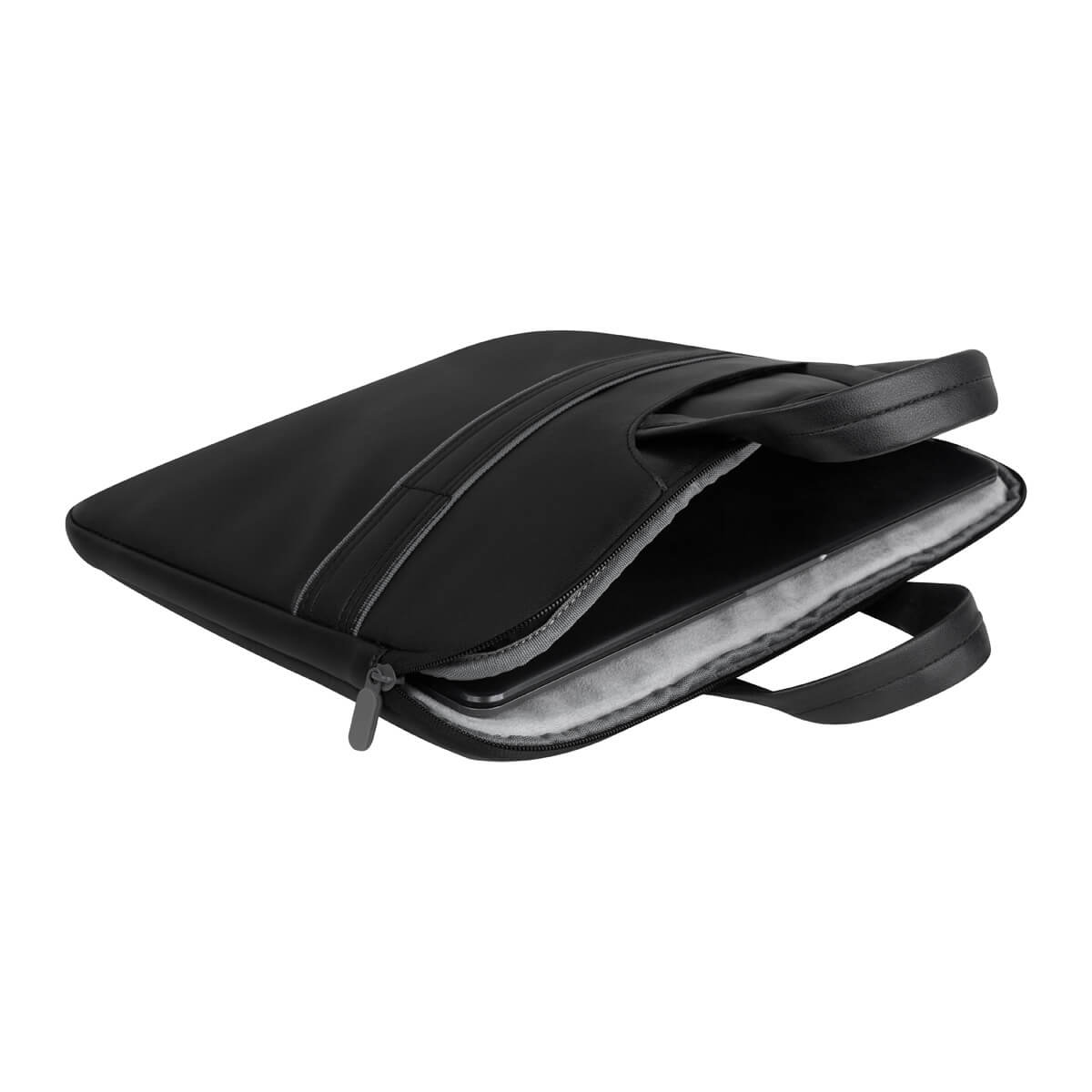 Portafolio fabricado en curpiel con diseño elegante y funcional, compartimento para laptop de hasta 15’’. Diseño elegante Cuenta con un compartimiento principal con cierre y forro suave para proteger de golpes o rayaduras. Además, agrega un práctico estuche con asa para guardar artículos esenciales. Su asa removible y ajustable, te permite llevarlo comodamente. Incluye banda trasera para colocar en trolley, lo que lo hace perfecto para viajes de negocios.