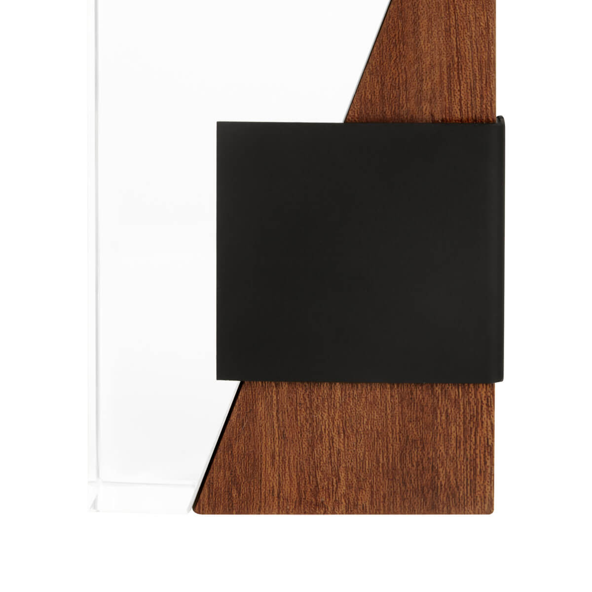 Reconocimiento asimétrico que combina materiales como vidrio, madera y metal, destacando un diseño moderno y minimalista. Cuenta con una placa metálica para su fácil grabado. Destaca un evento memorable, una mención honorifica o celebración especial. Incluye caja de regalo con broche imantado para cerrar y esponja interna para protección. La madera es un producto natural el cual puede presentar variaciones en tonalidades y vetas