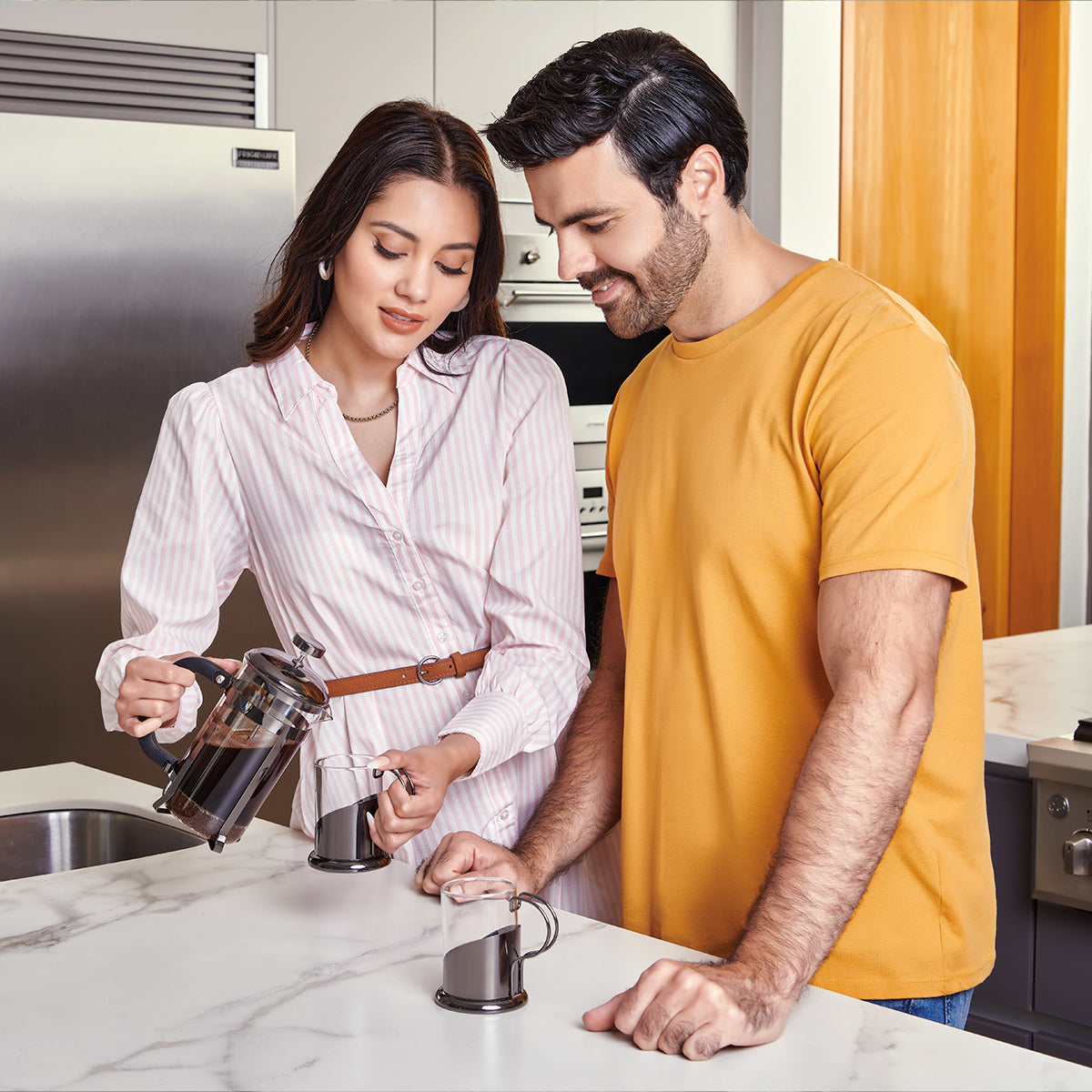 Set de prensa francesa con 2 tazas. Incluye caja de regalo.