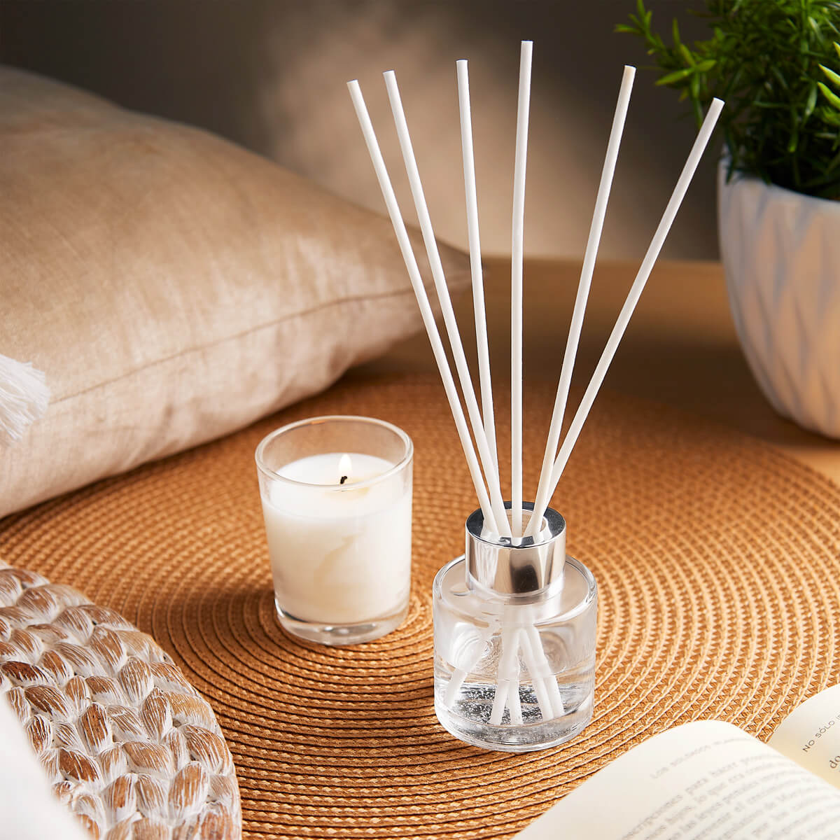 Material: Vidrio / Cera de soya / Fibra de poliéster / Fragancia