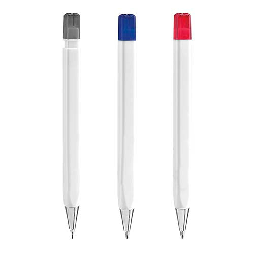 Incluye lapicera 0.5 mm y bolígrafos tinta azul y roja.