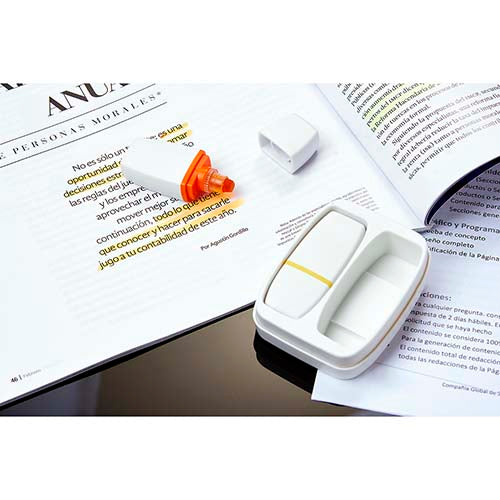 Impresión: Serigrafía / Tampografía, 1.5 x 2 cm Marcador / 4 x 5 cm Estuche