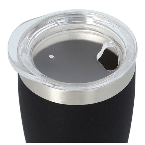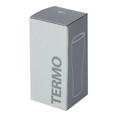 Doble pared. Cerrado al vacío. Pared interna y externa acero inoxidable. Incluye tapa de plástico. Mantiene temperatura caliente 6 hrs y temperatura fría 8 hrs aproximadamente. Color negro con recubrimiento en terminado tipo rugoso. Incluye caja individual.