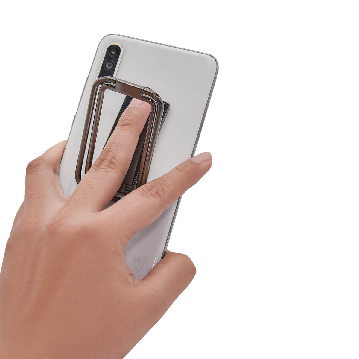 Soporte adherible para smartphone o tablet. Diseño plegable para ajustar en diferentes posiciones, dos brazos ajustables para proporcionar más ángulos de visión y rotación de 360° en la base.