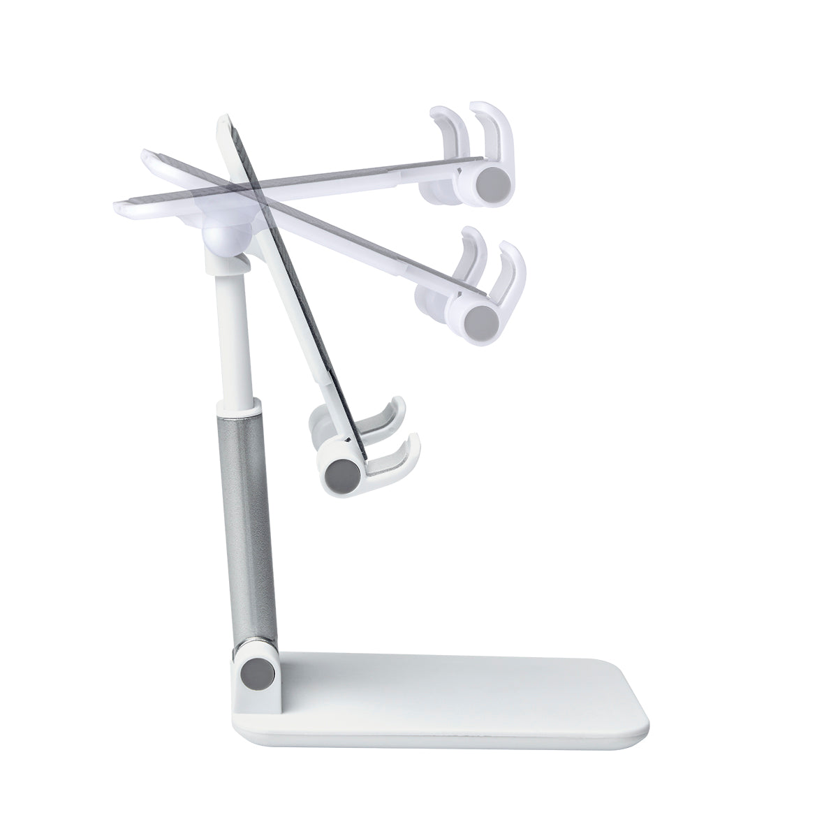 Soporte plegable. Soporte y base con material antiderrapante. Altura e inclinación ajustable. Desplegable a una altura máxima de 16 cm.